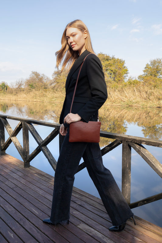 Carry Clutch - Kadın Hakiki Deri Omuz Askılı Pudra Portföy/Çapraz Çanta