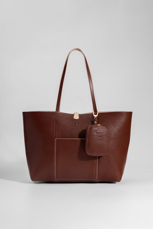 Duo Kadın Hakiki Deri Reversible Çift Taraflı Tote Çanta Pudra & Taba