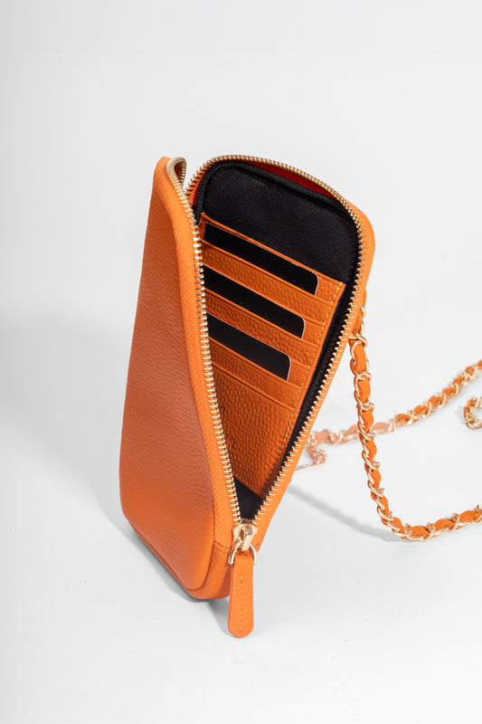 Laurel Plus - Turuncu Hakiki Deri Büyük Boy Telefon Çantası