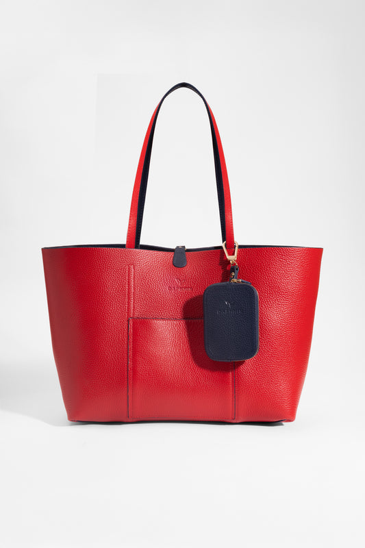 Duo Kadın Hakiki Deri Reversible Çift Taraflı Tote Çanta Lacivert & Kırmızı