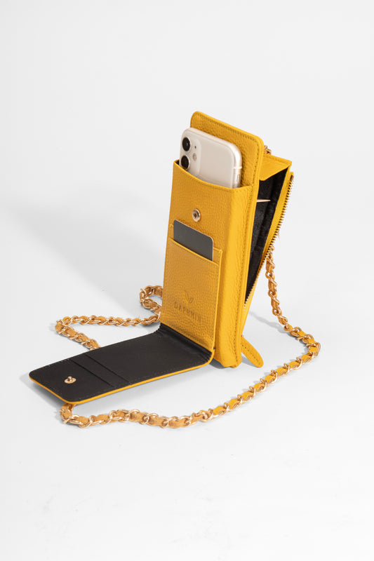 Laurel - Kadın Sarı Hakiki Deri Telefon Çantası ve Cüzdan