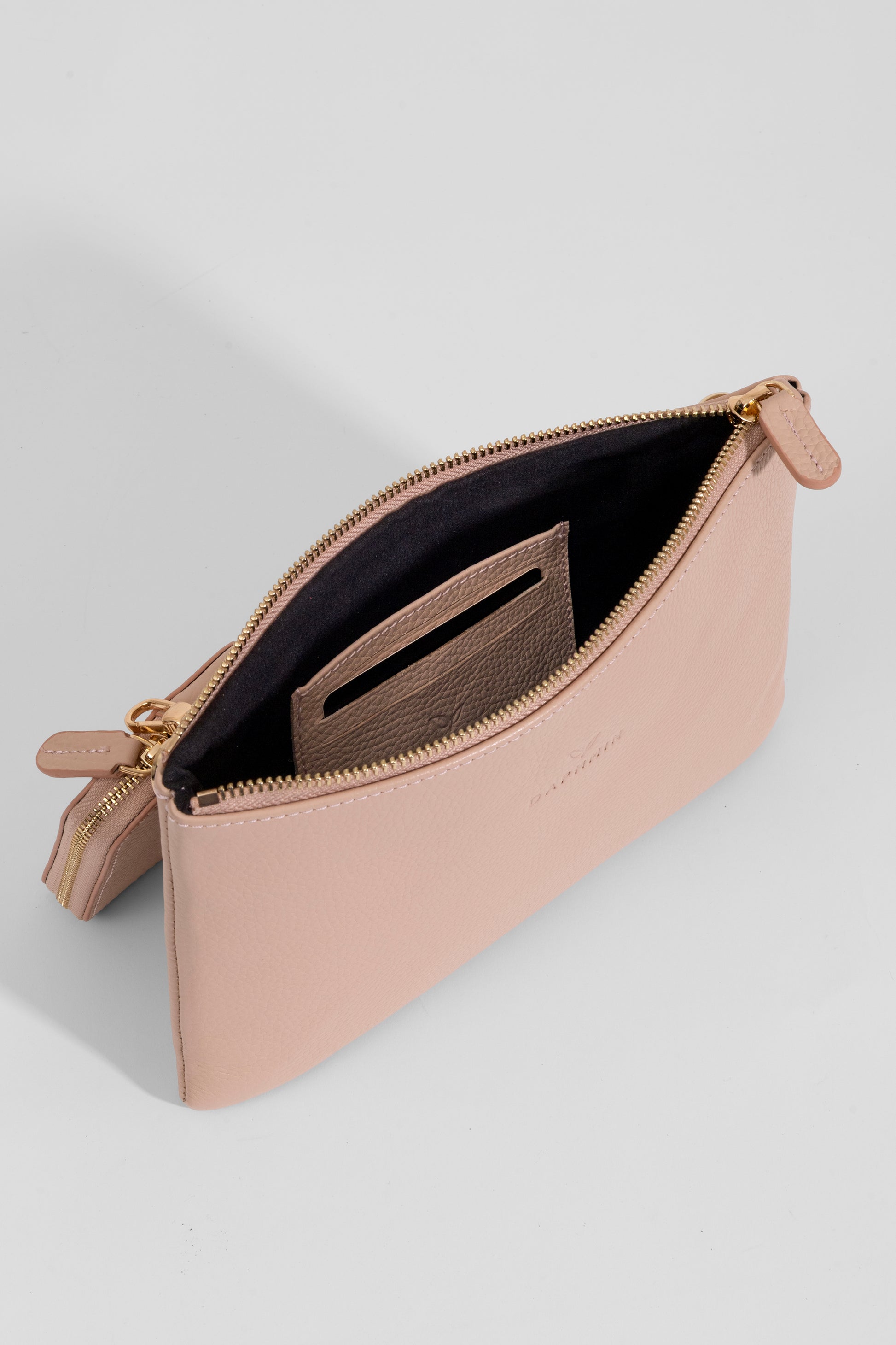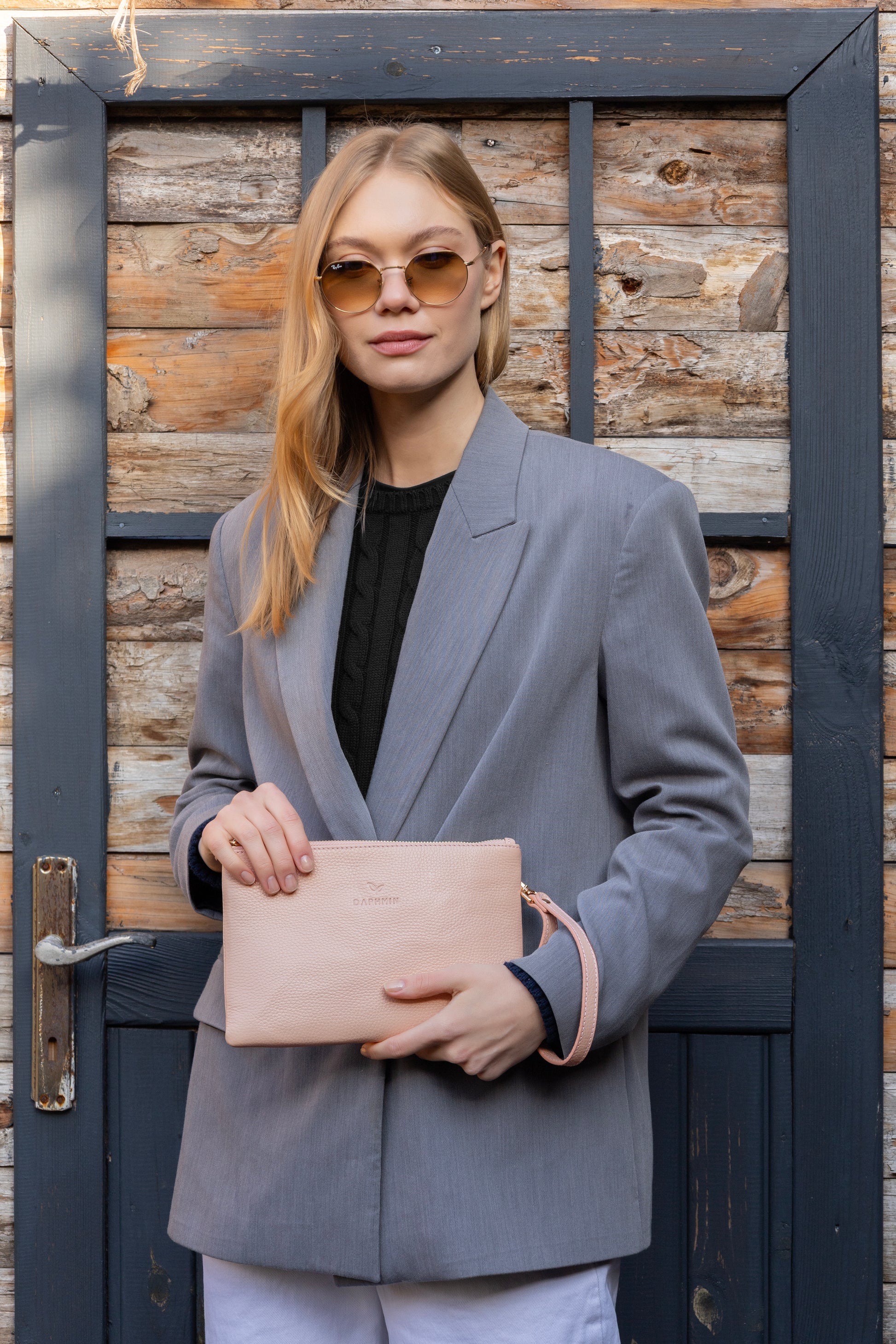 Carry Clutch; elde, omuzda ya da çapraz şekilde kullanılabilen çok yönlü yapısı, yumuşak dokulu %100 dana derisi ve minimal çizgileriyle günün her anına uyum sağlamak için tasarlandı. Hafif formu, düzenli iç yapısı ve birlikte gelen mini deri cüzdanıyla modern ve pratik bir kullanım sunar.