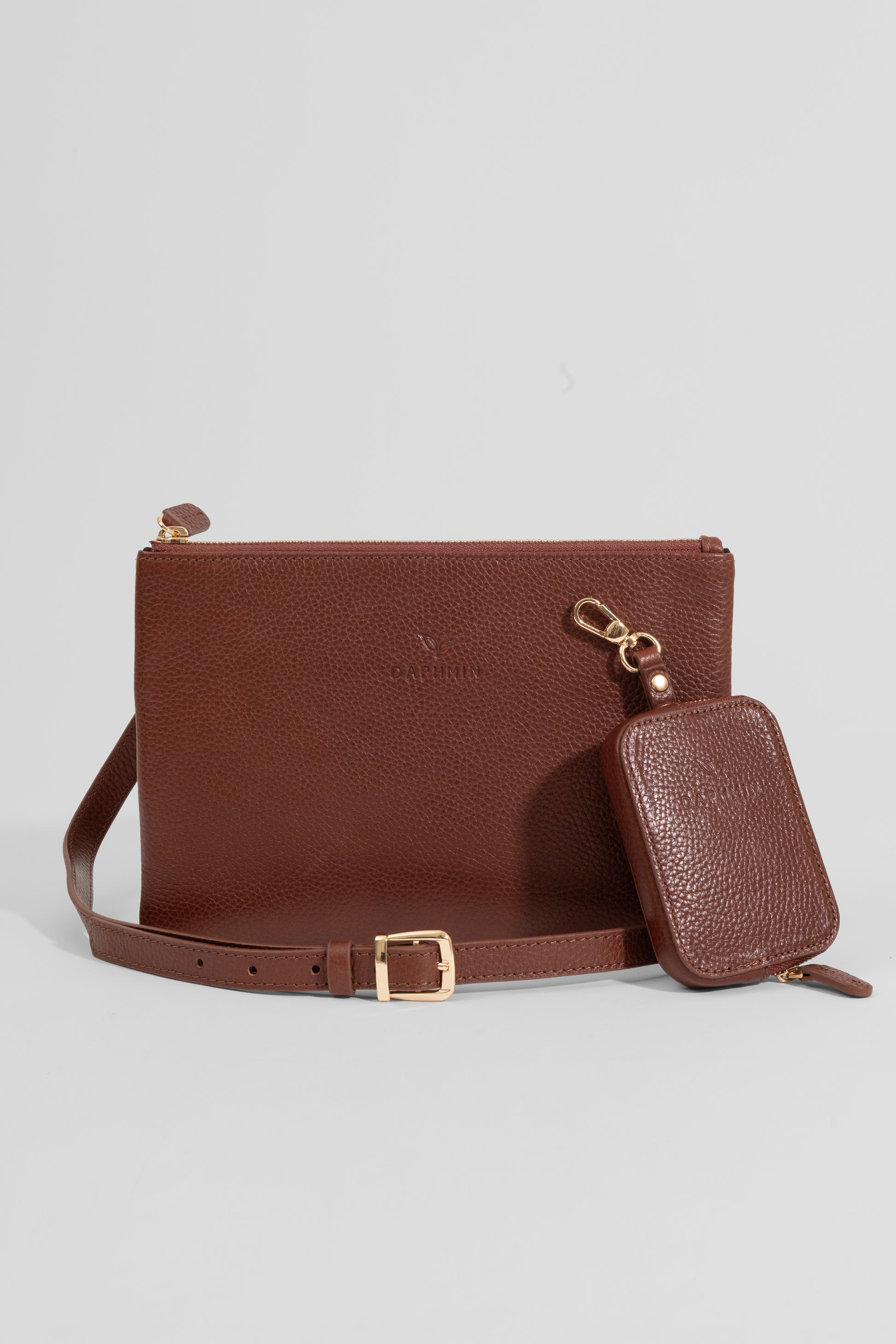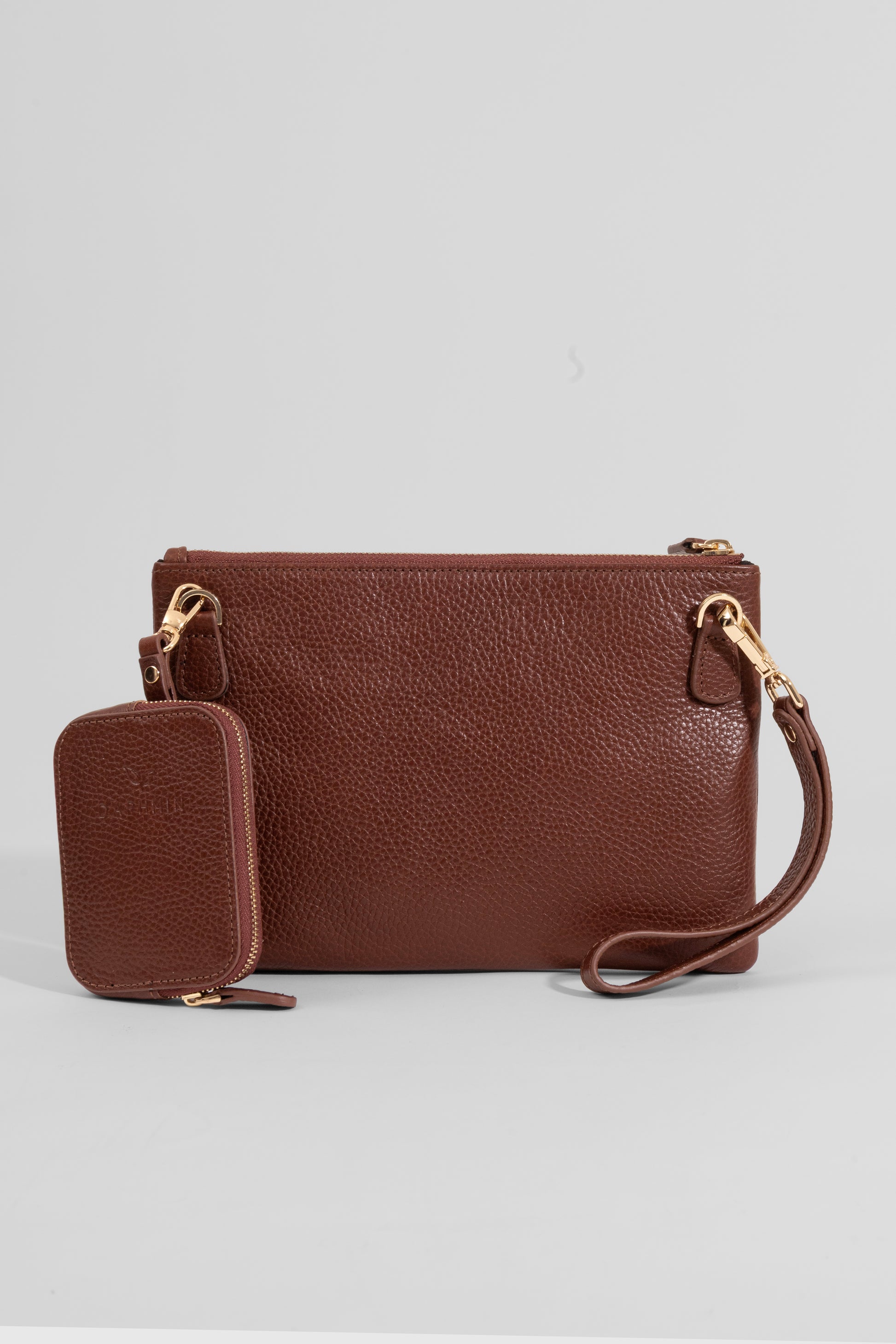 Carry Clutch - Kadın Hakiki Deri Omuz Askılı Taba Portföy/Çapraz Çanta