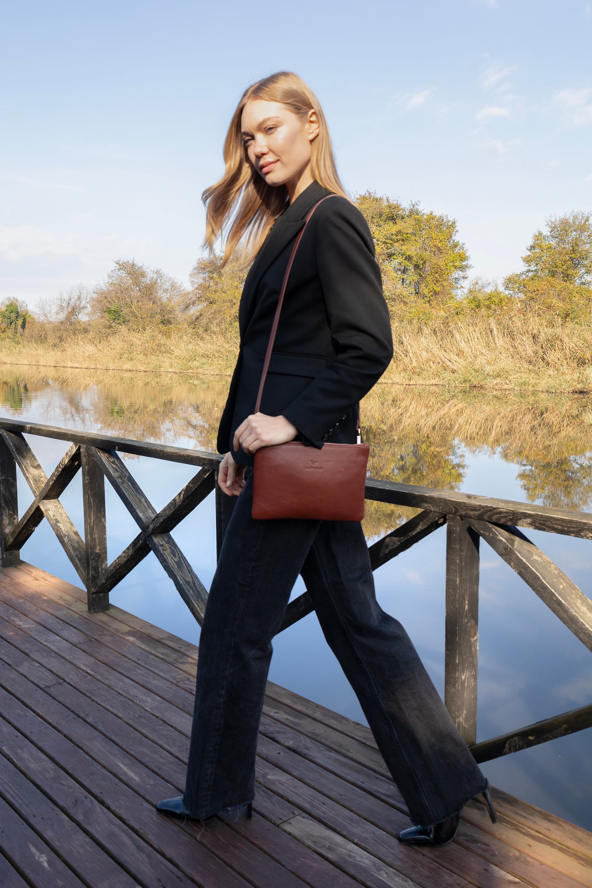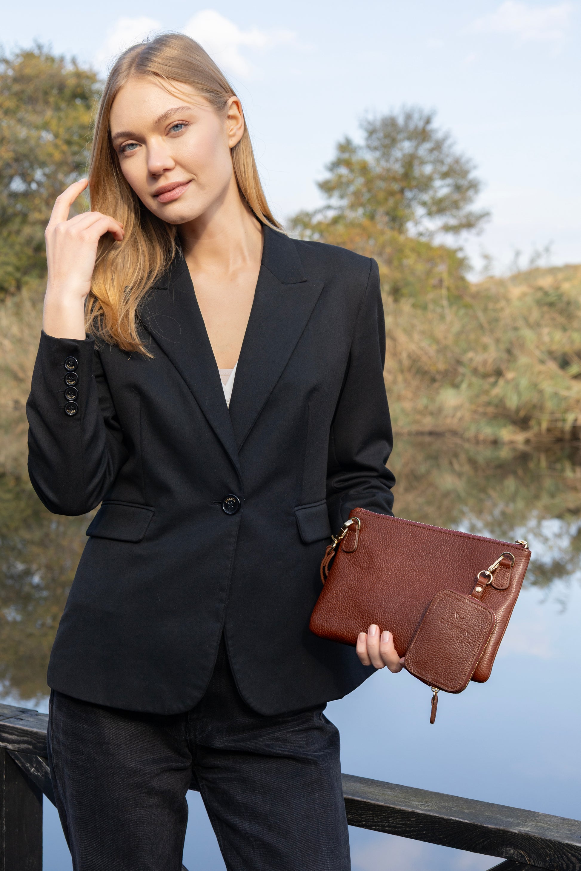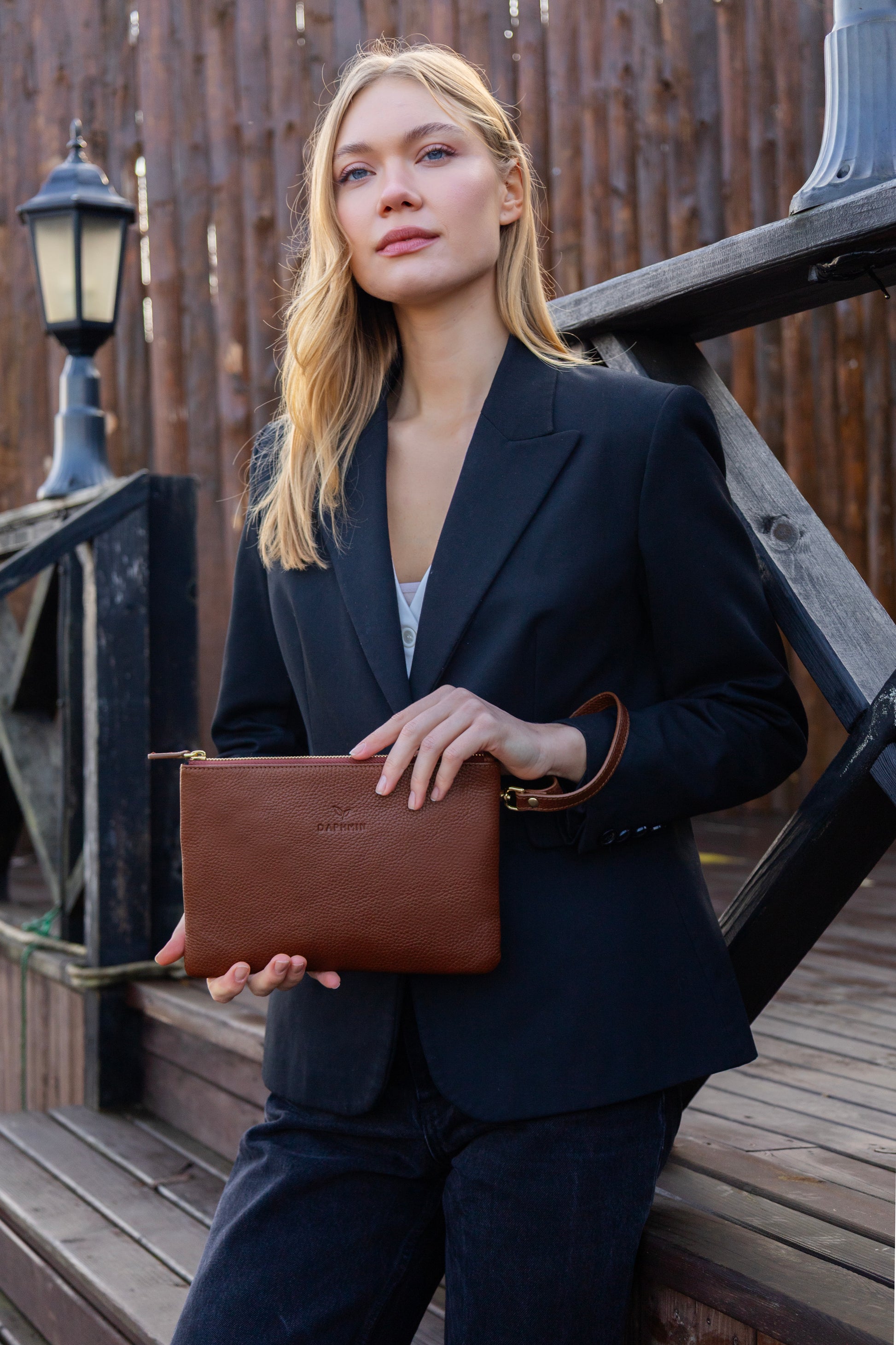 Carry Clutch; elde, omuzda ya da çapraz şekilde kullanılabilen çok yönlü yapısı, yumuşak dokulu %100 dana derisi ve minimal çizgileriyle günün her anına uyum sağlamak için tasarlandı. Hafif formu, düzenli iç yapısı ve birlikte gelen mini deri cüzdanıyla modern ve pratik bir kullanım sunar.
