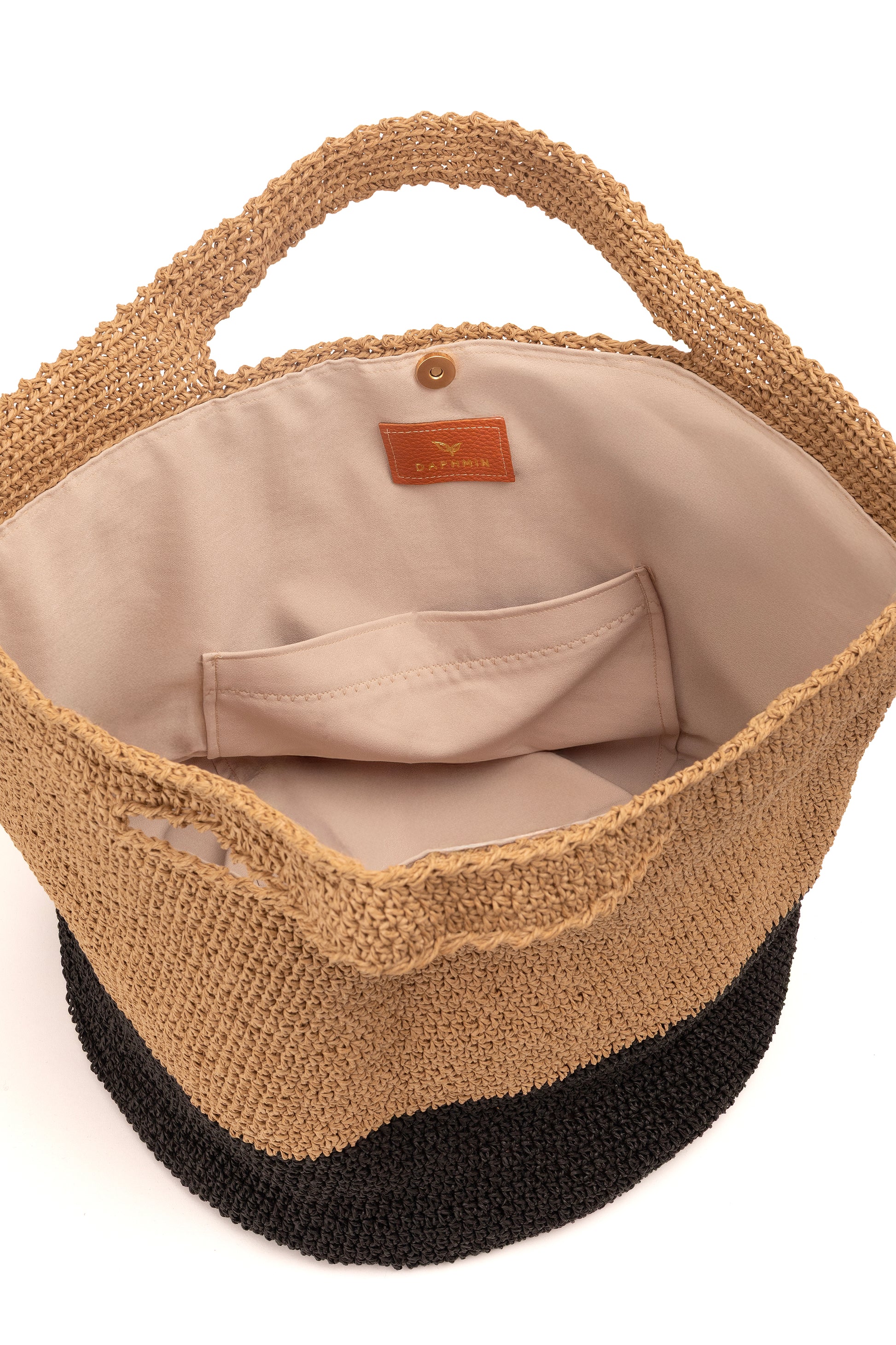 Geniş iç hacmi ve zarif tasarımıyla yaz stilinize sıcak bir dokunuş: DAPHMIN yazlık çanta koleksiyonu. Hasır görünümlü kağıt ipten üretilmiş bu çantalar, iç astarı ve fonksiyonel iç cebiyle günlük kullanım için ideal. Telefon, güneş gözlüğü, anahtar gibi günlük ihtiyaçlarınızı düzenli ve kolay ulaşılabilir şekilde taşımanızı sağlar.