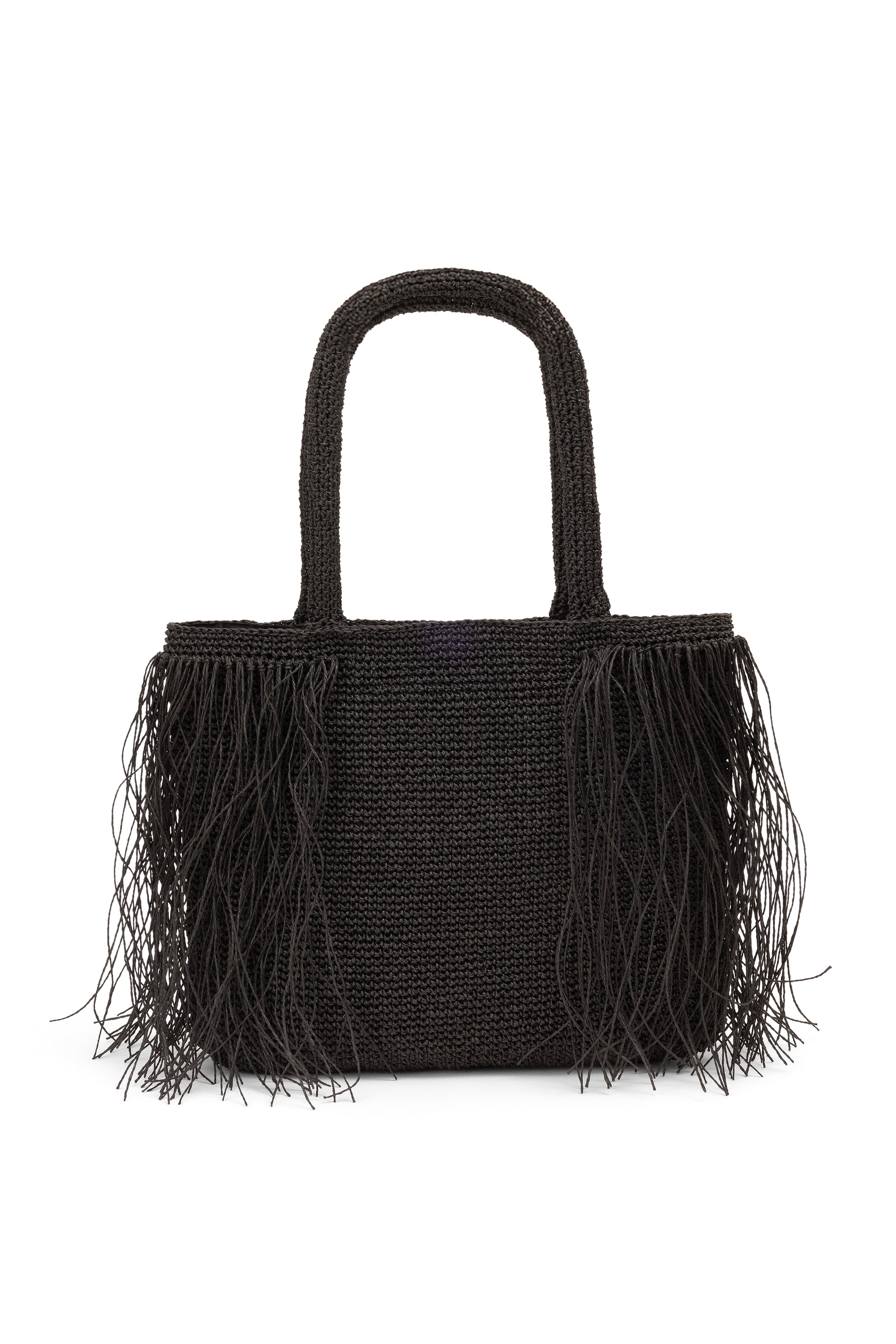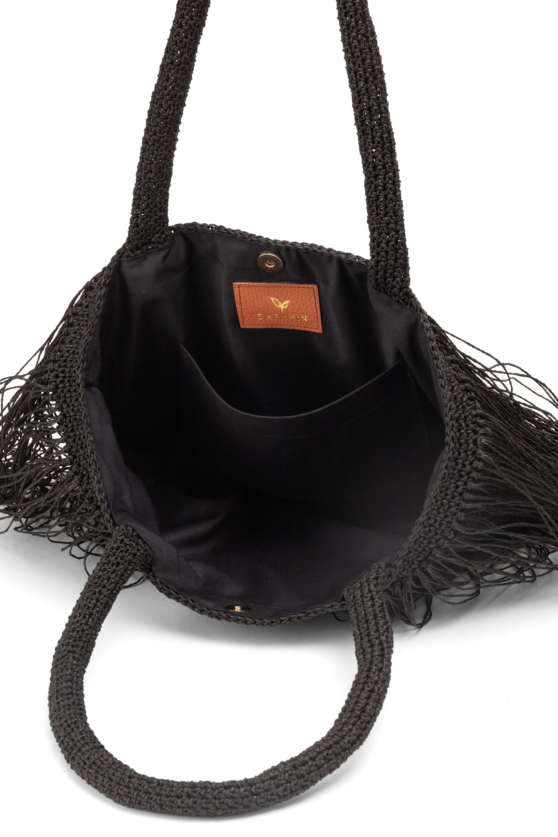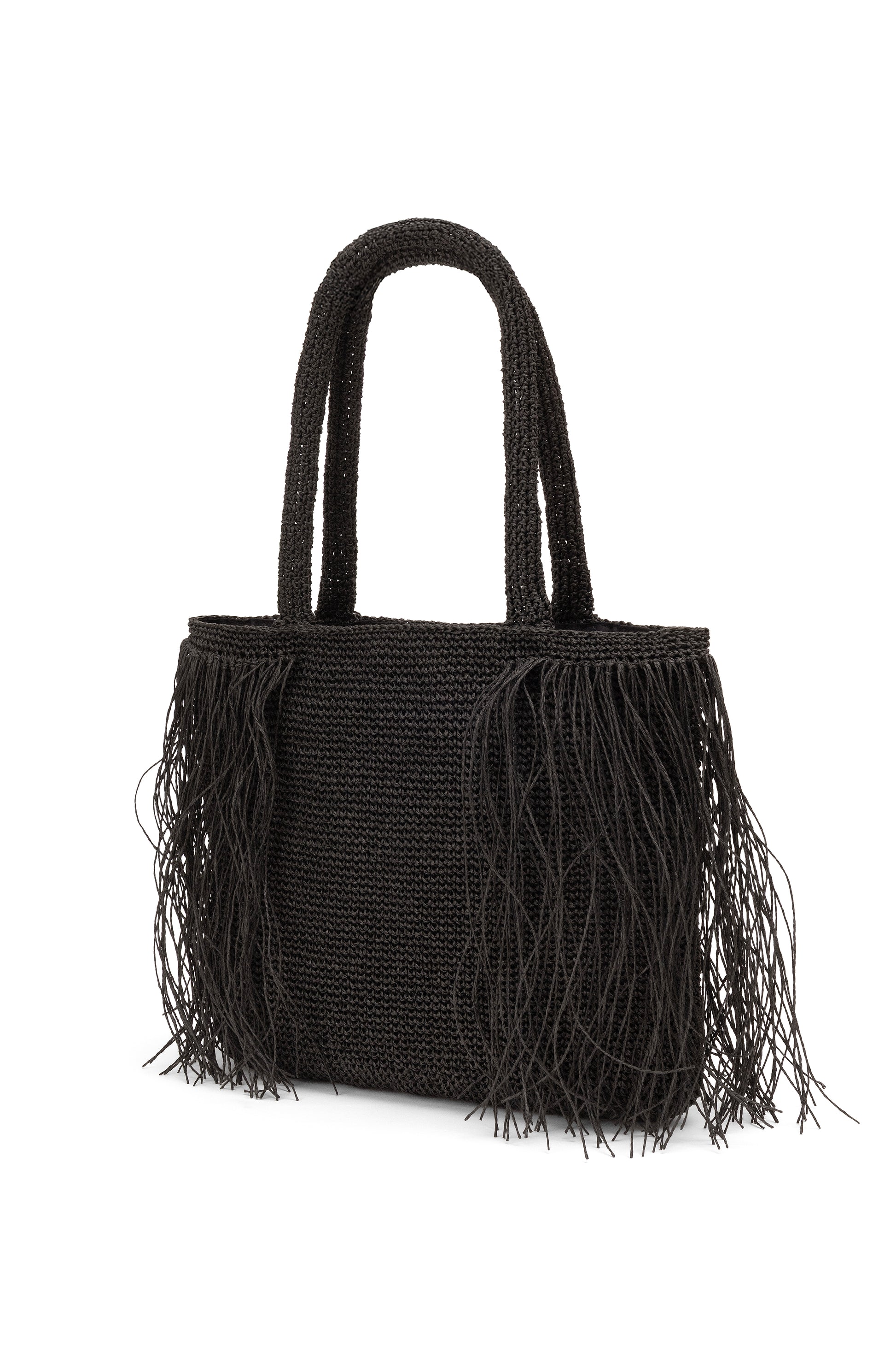 Hasır Görünümlü Saçaklı Yatay Omuz Çantası - Siyah
