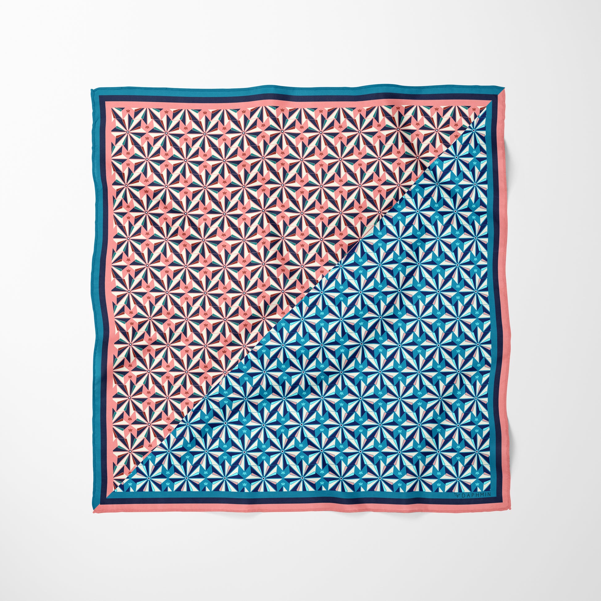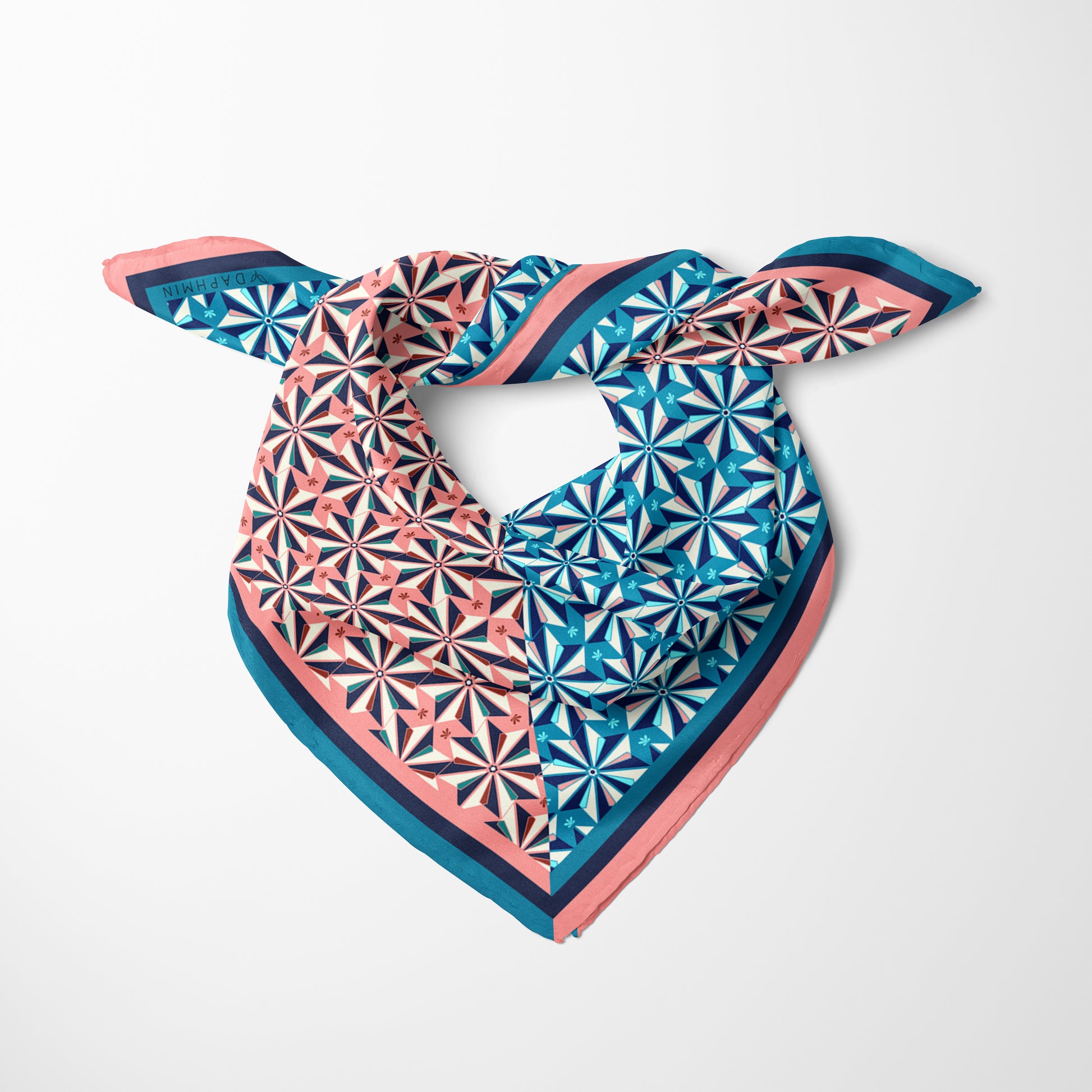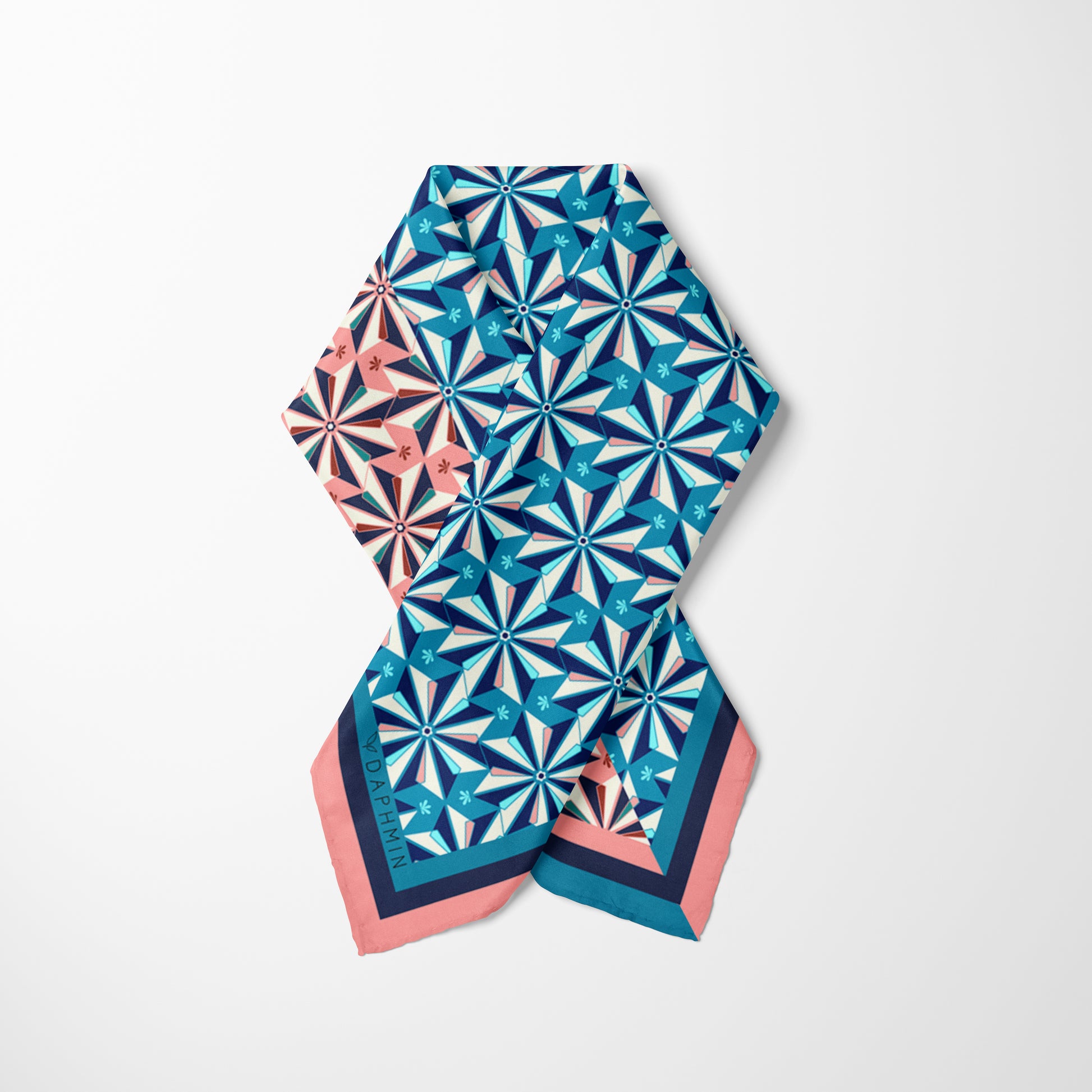 Zarafeti ve özgünlüğü bir araya getiren bu %100 ipek Daphmin fular, kendine has desenleri ve yumuşacık dokusuyla stilinizi tamamlamaya hazır. 50x50 cm ölçüsüyle özellikle boyunda, saçta, bilekte ya da çanta sapında kullanım için ideal bir aksesuardır.