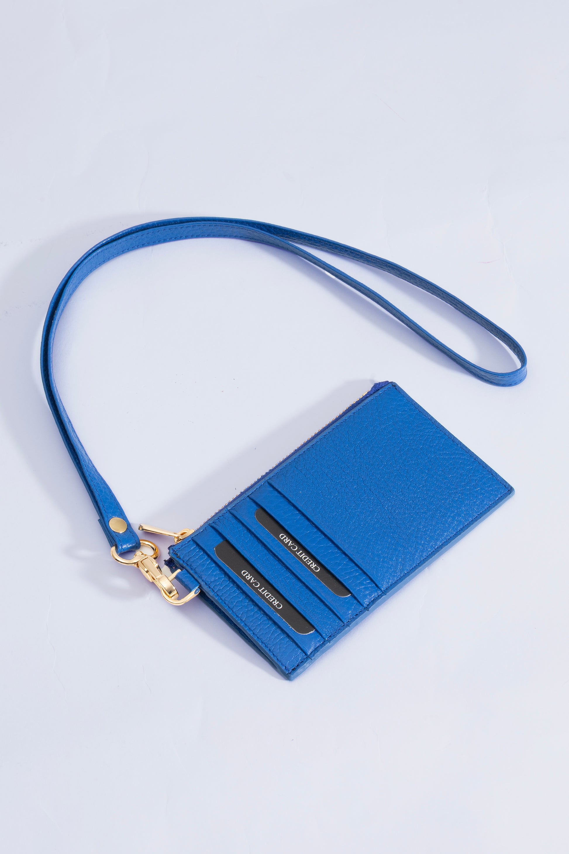 Mira Askılı Hakiki Deri Kartlık - Mavi