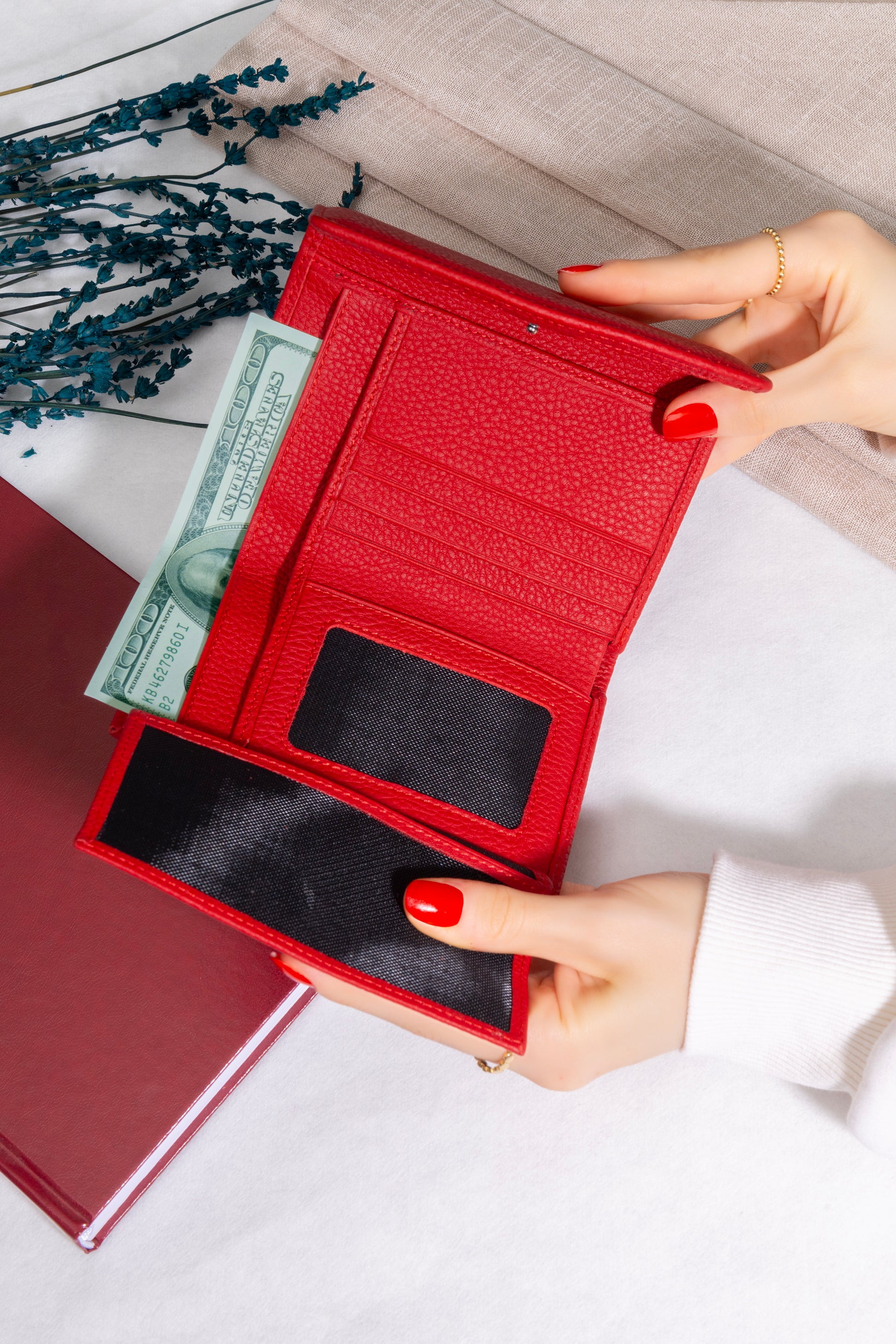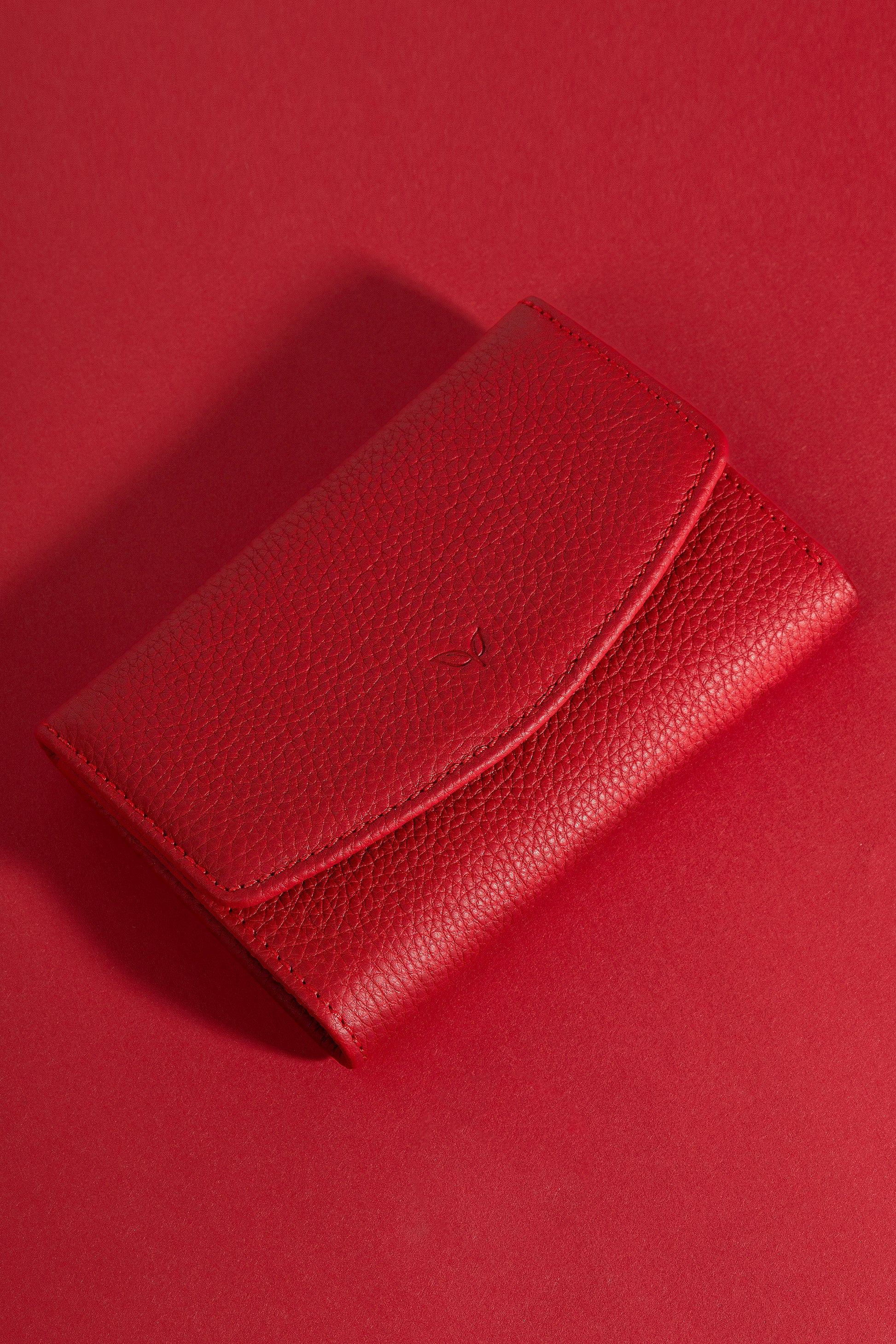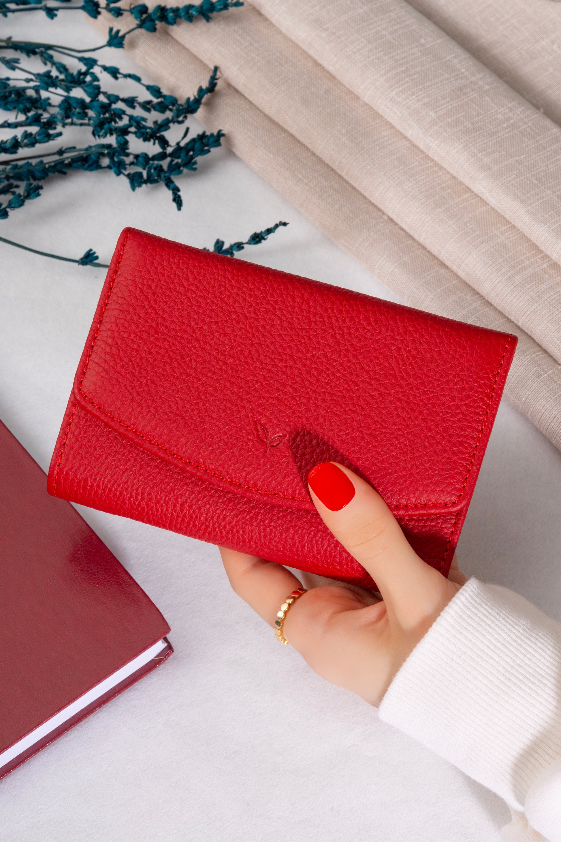 Perle - Kadın Kırmızı Trifold Hakiki Deri Cüzdan