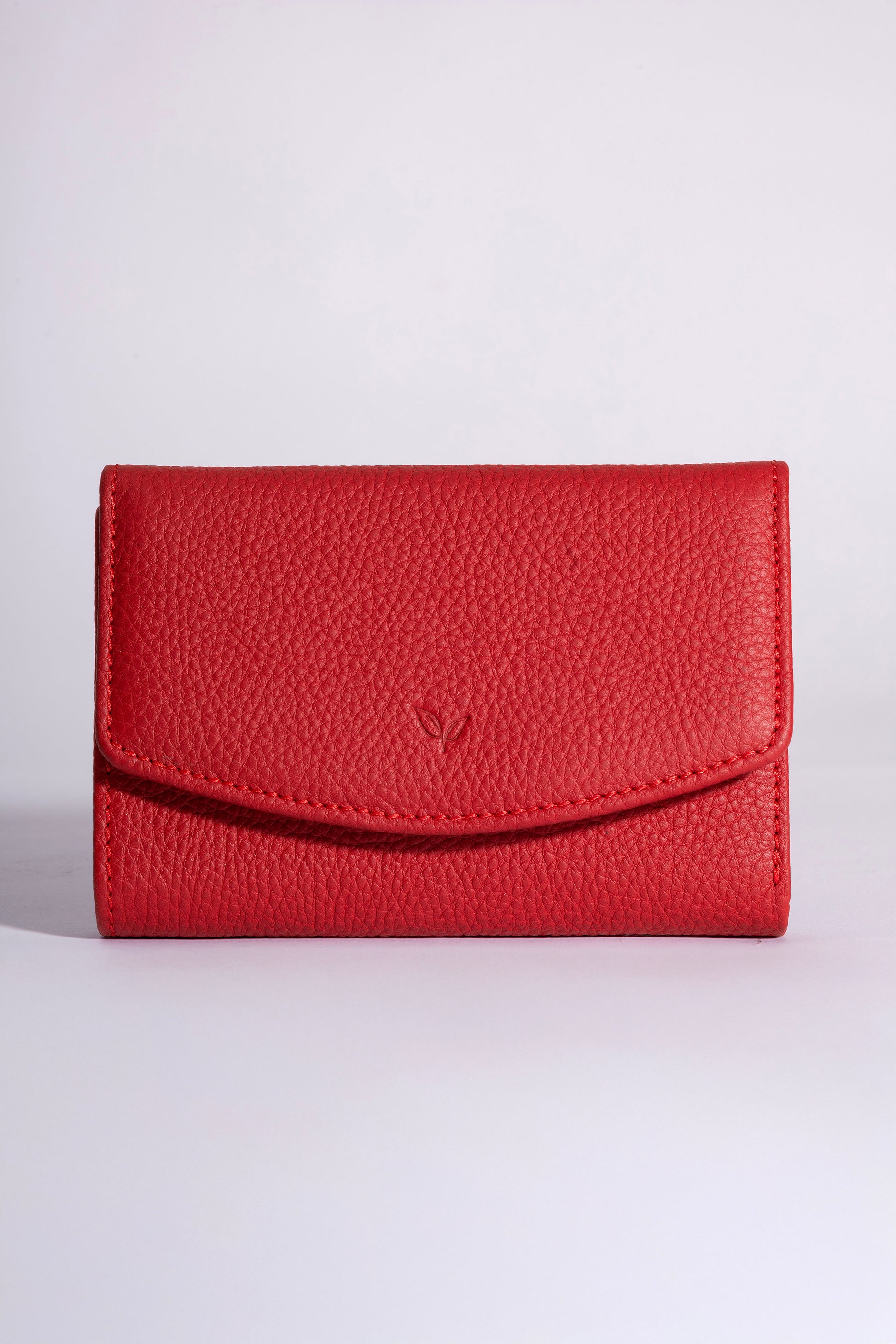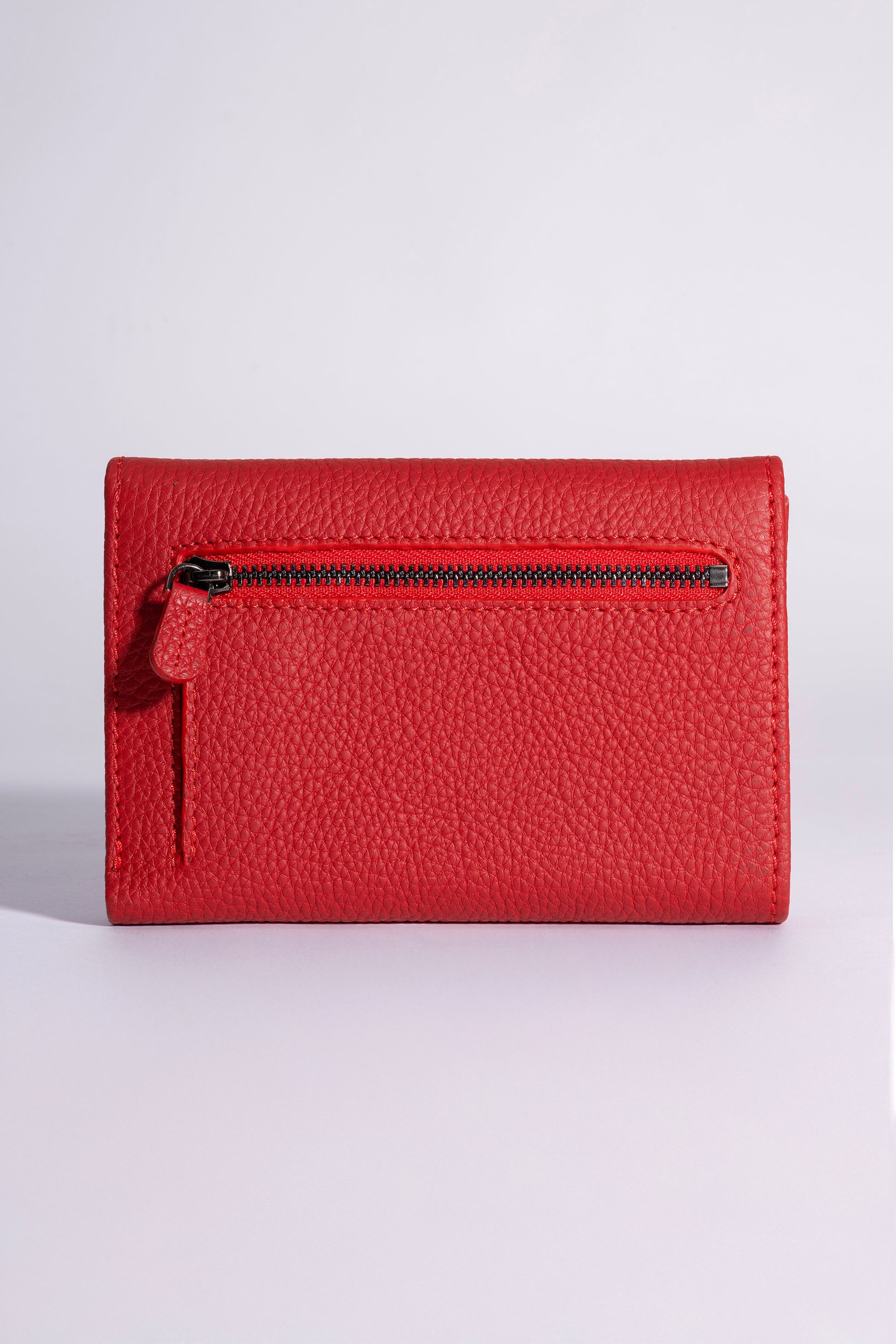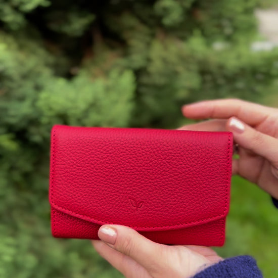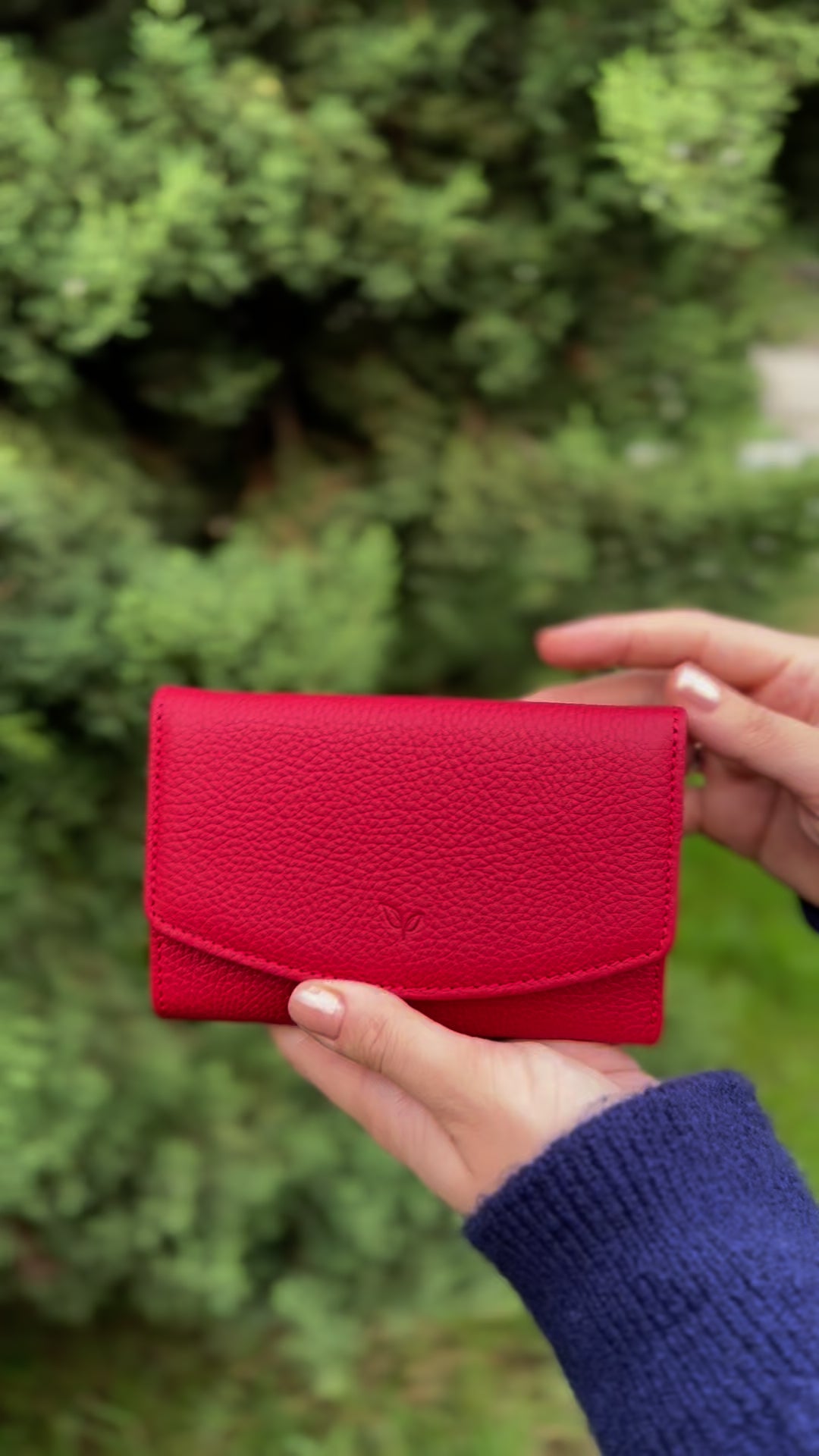 Perle - Kadın Kırmızı Trifold Hakiki Deri Cüzdan