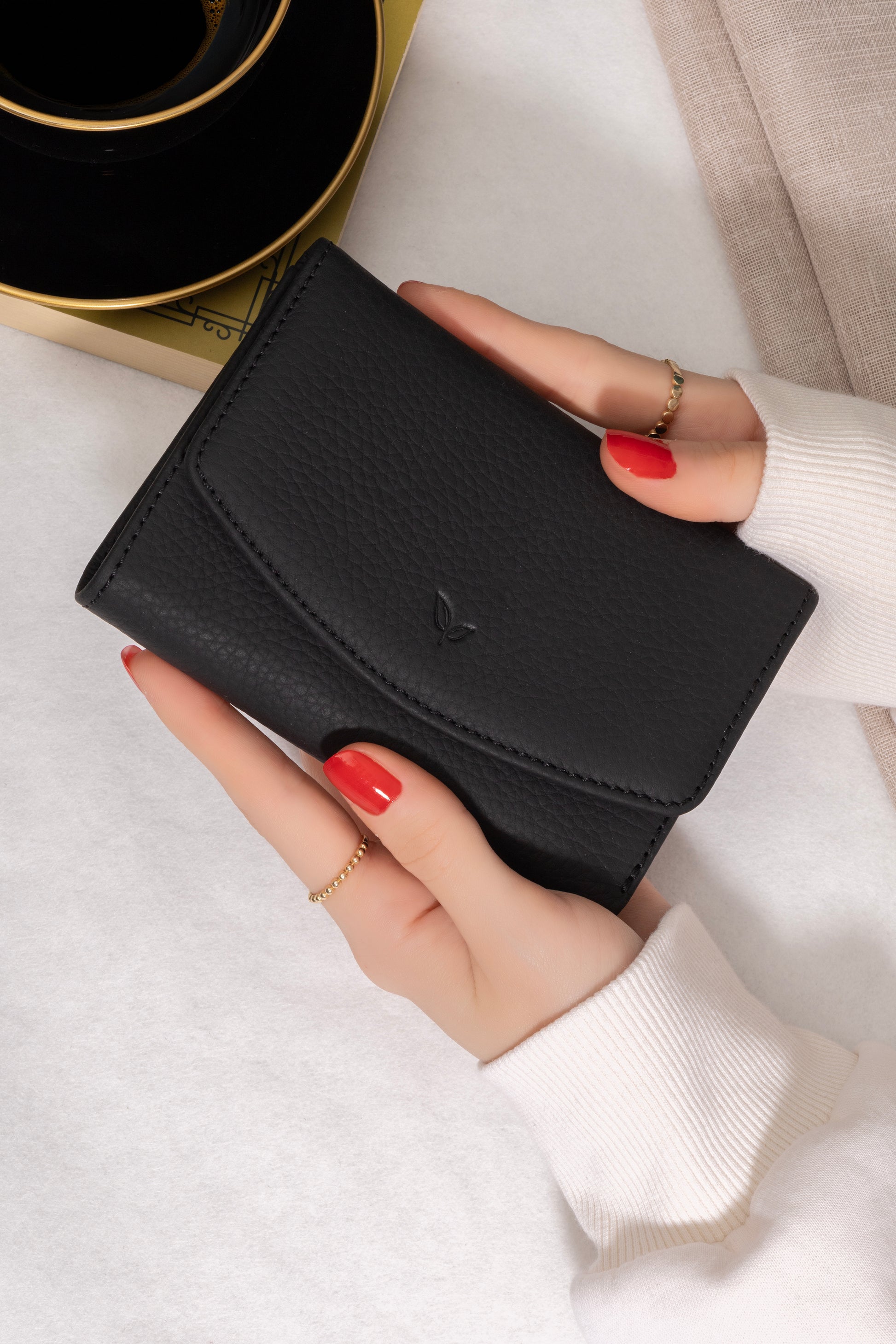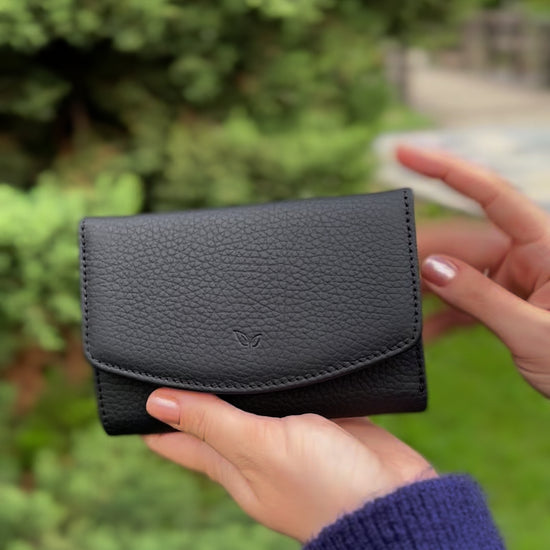 Perle - Kadın Siyah Trifold Hakiki Deri Cüzdan