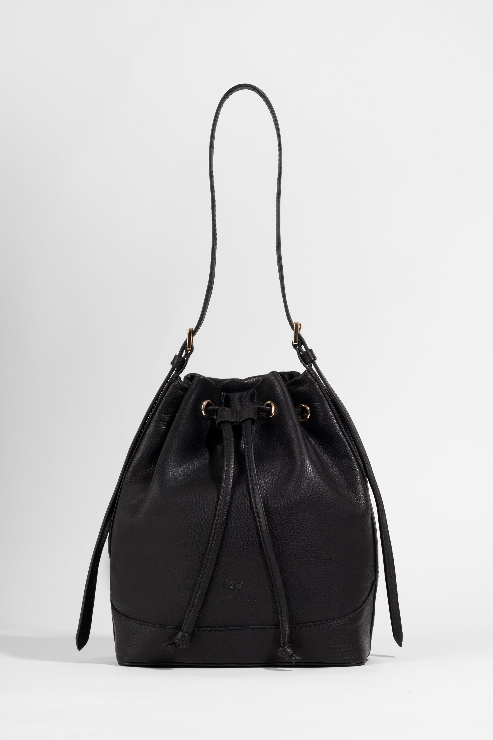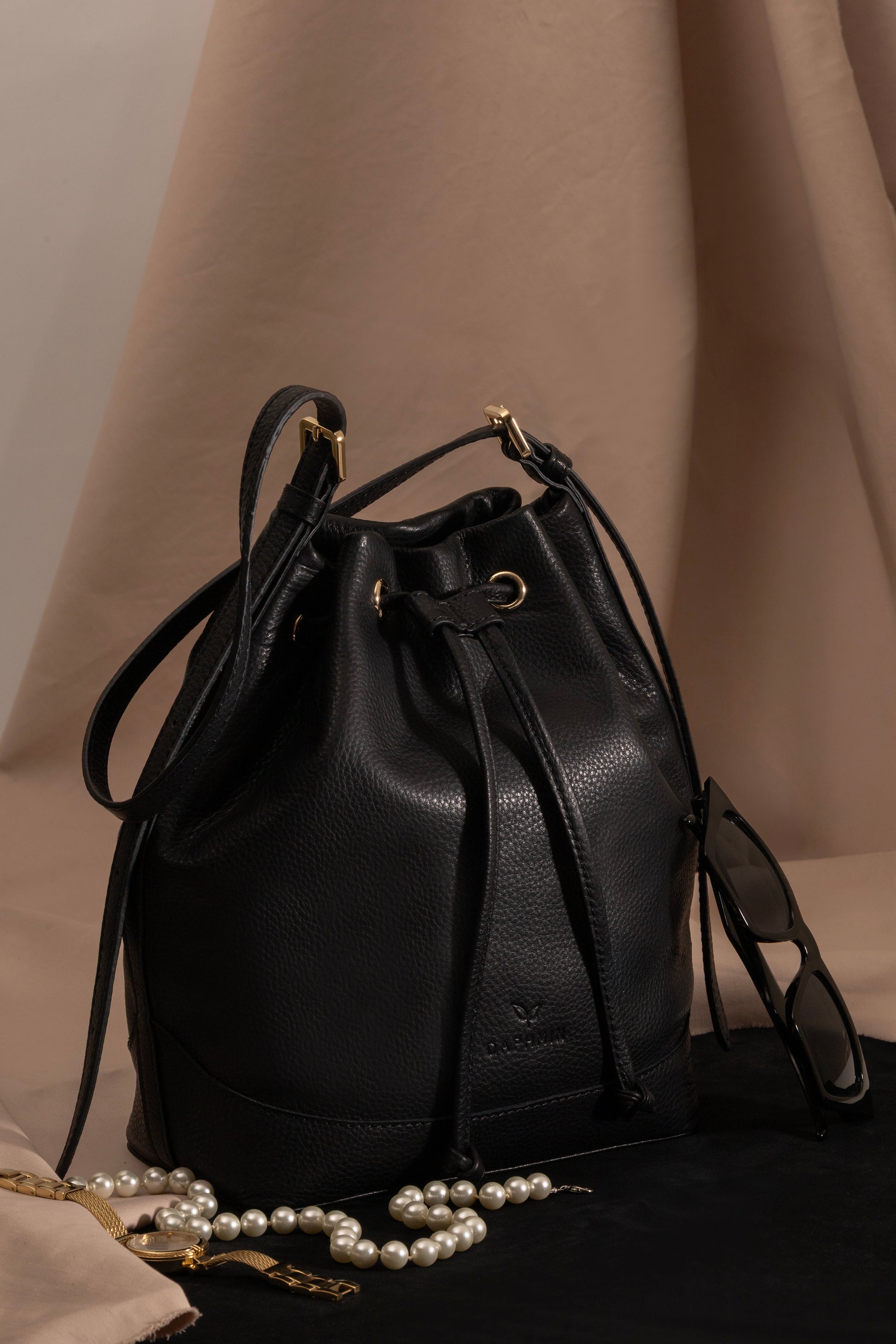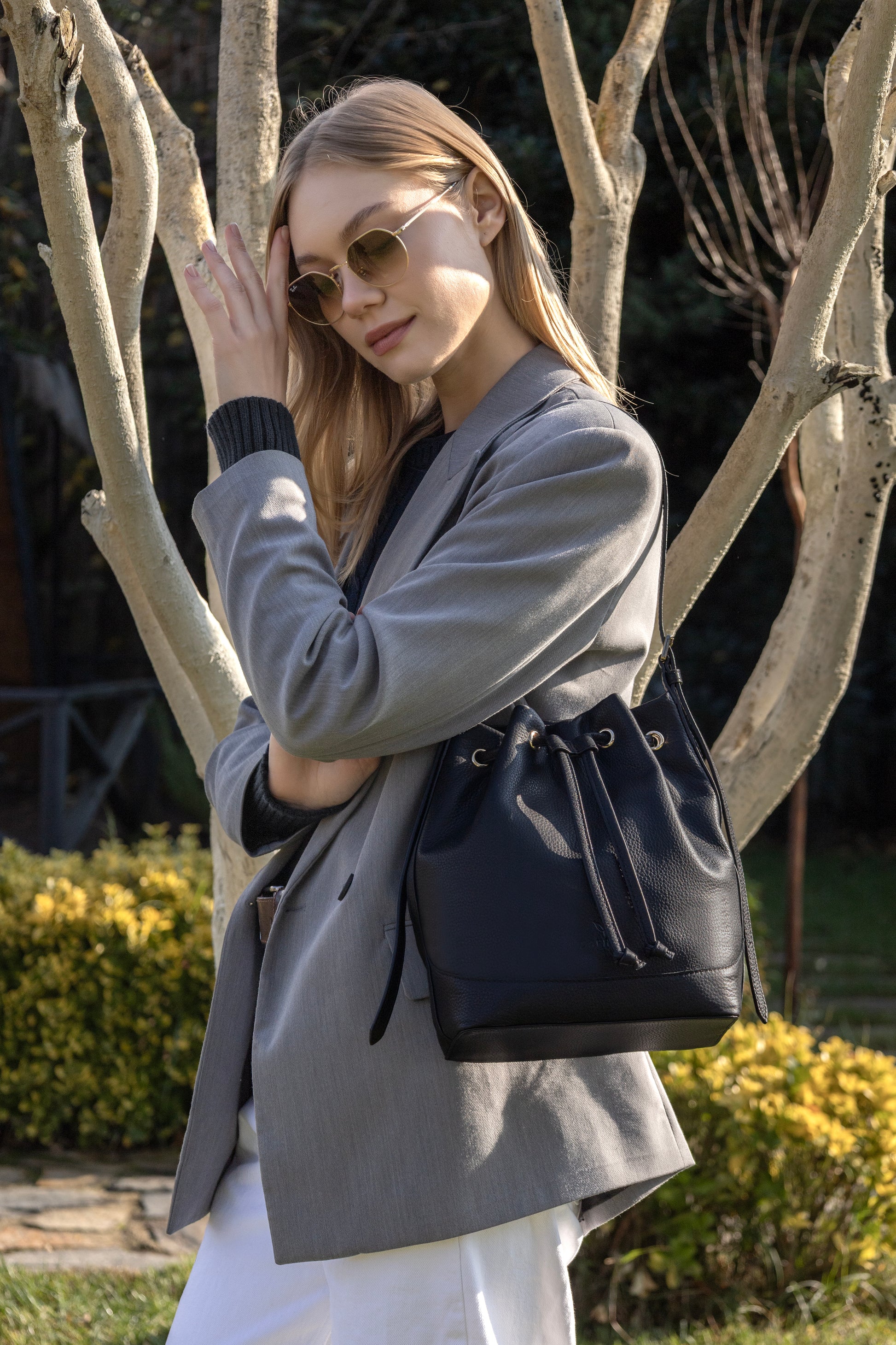 Sorella Bucket – Siyah Hakiki Deri Bucket Omuz Çantası