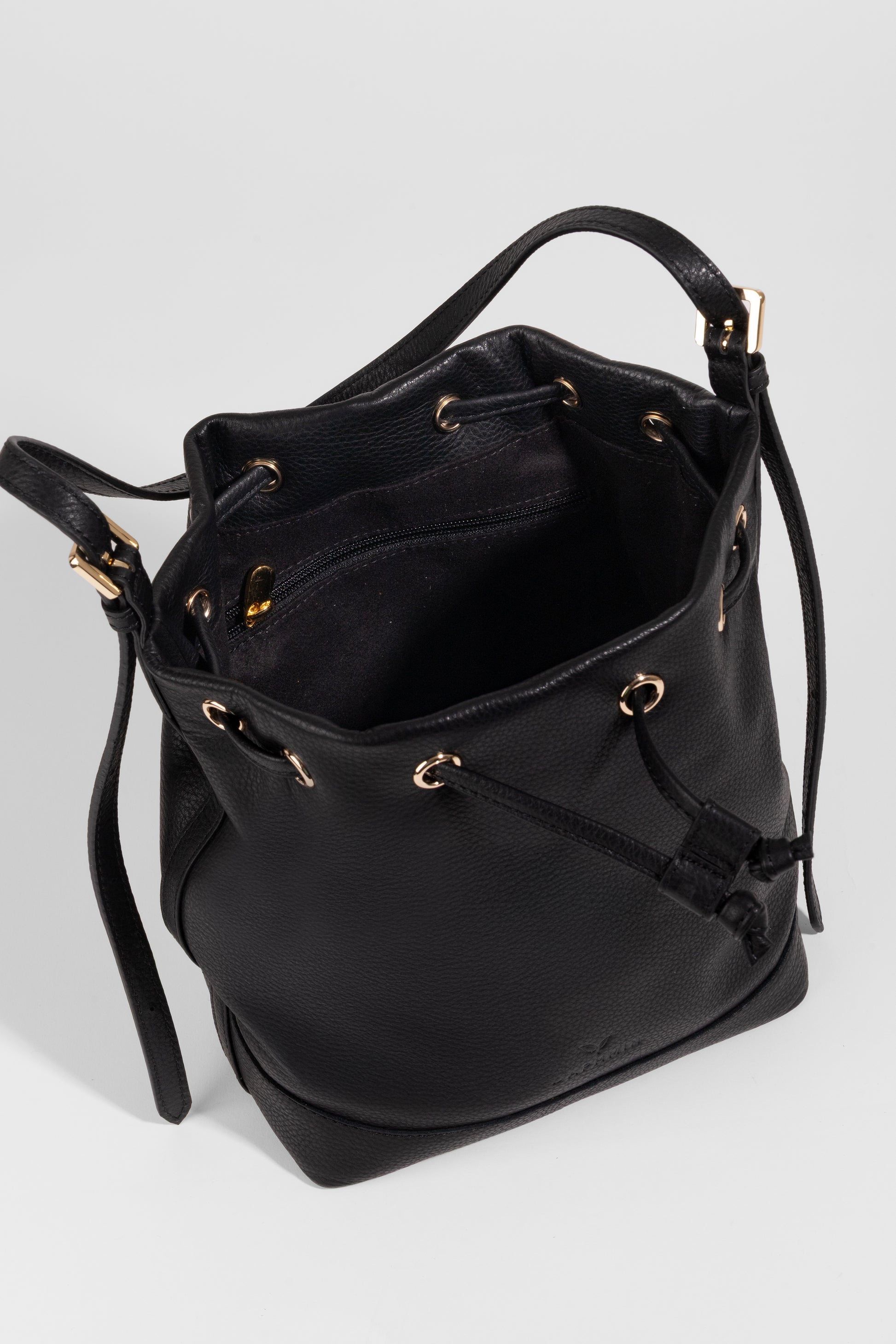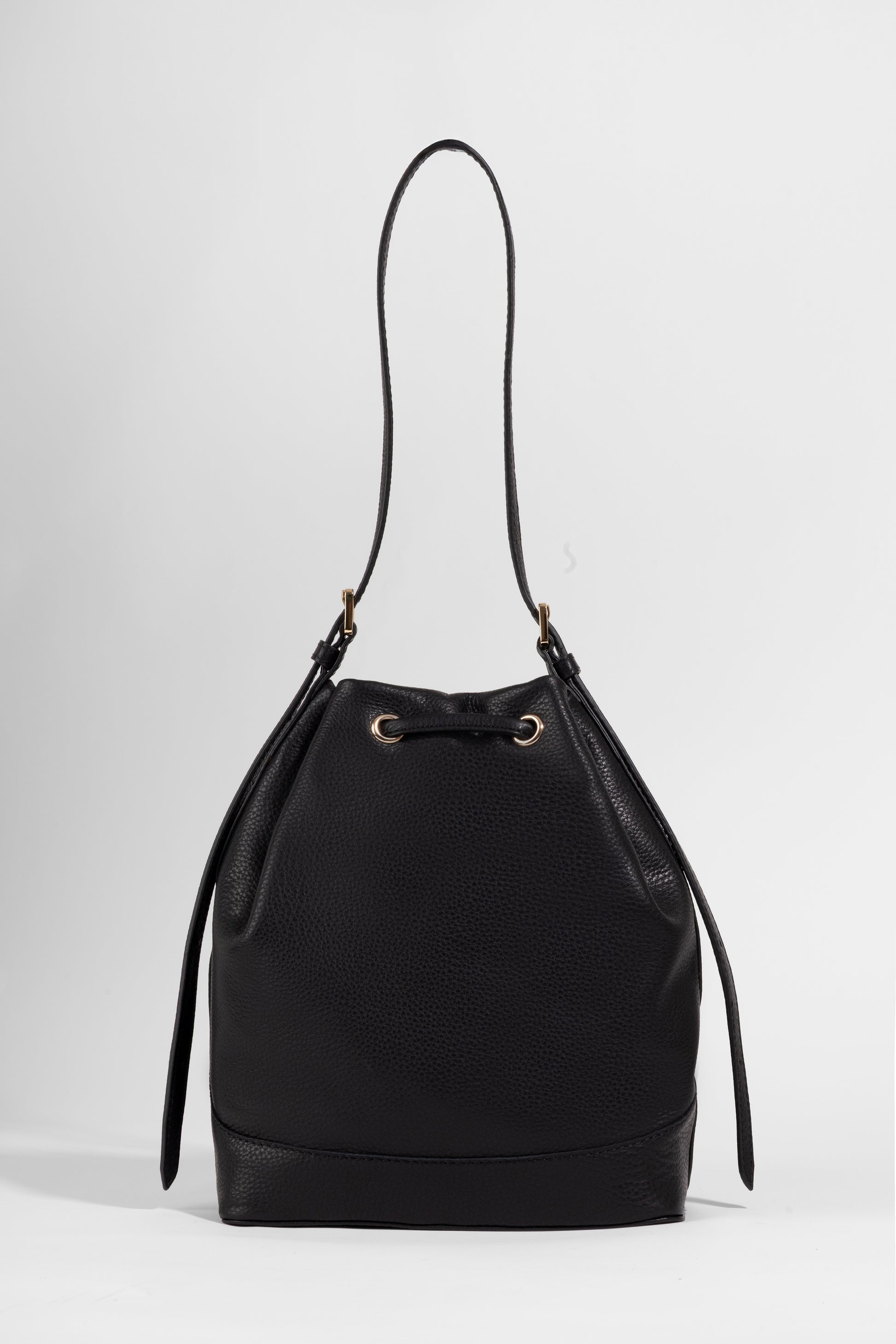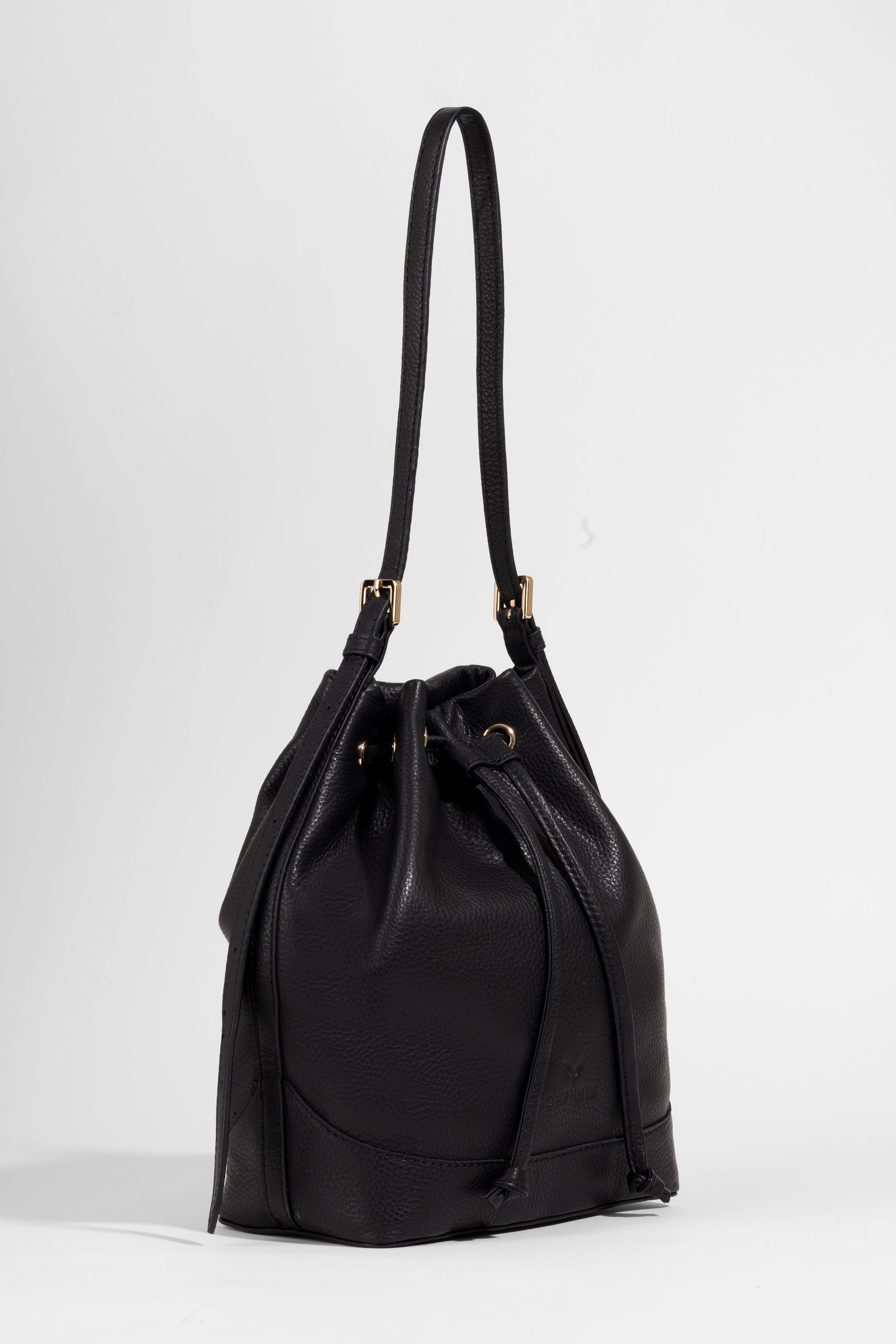 Sorella Bucket – Siyah Hakiki Deri Bucket Omuz Çantası