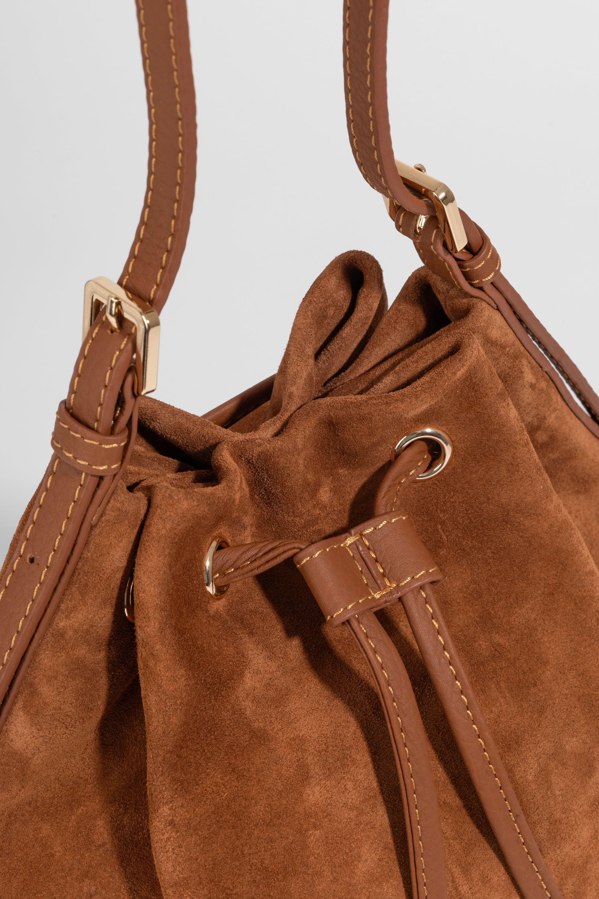 Sorella Suede Bucket – Taba Süet Kadın Omuz Çantası