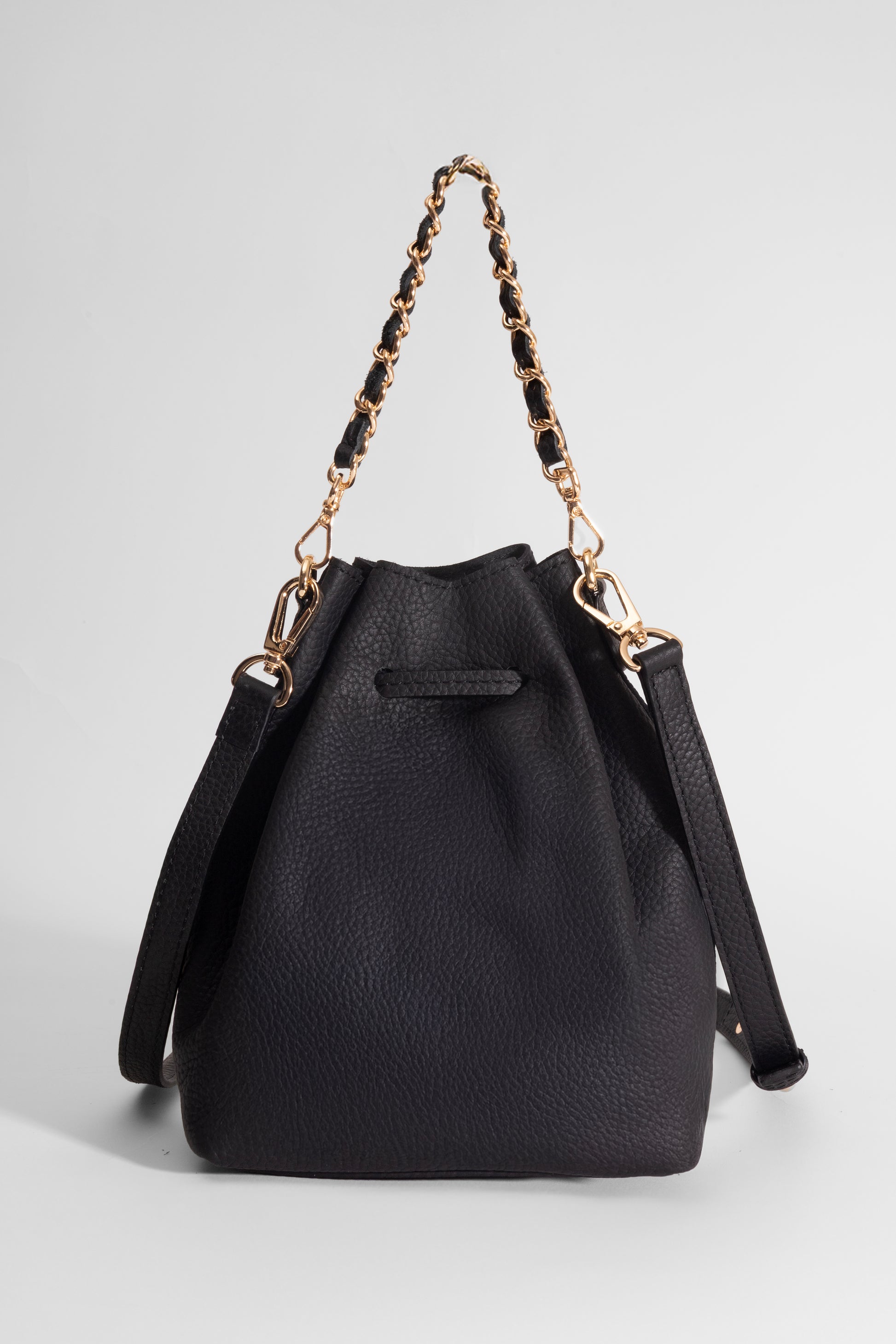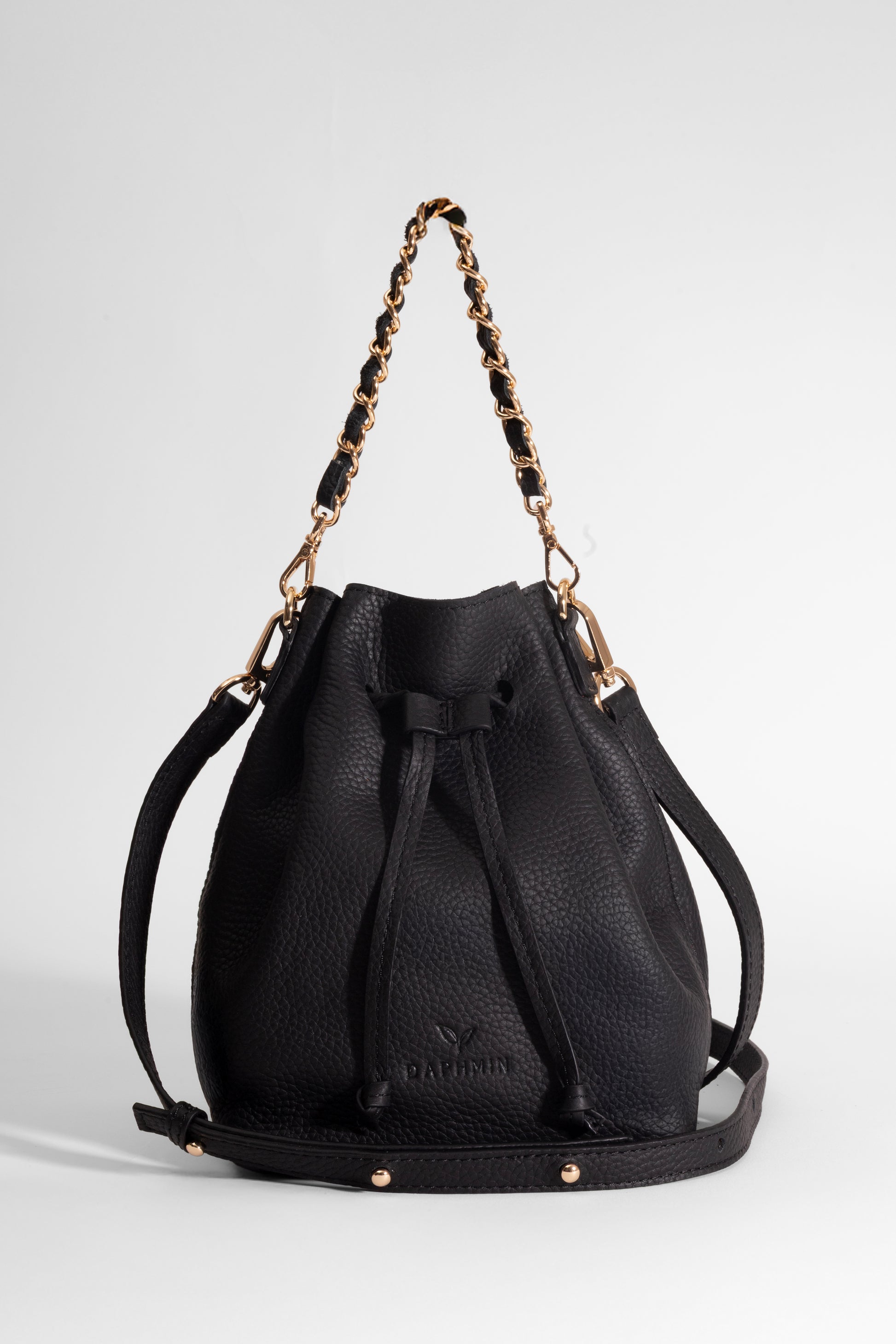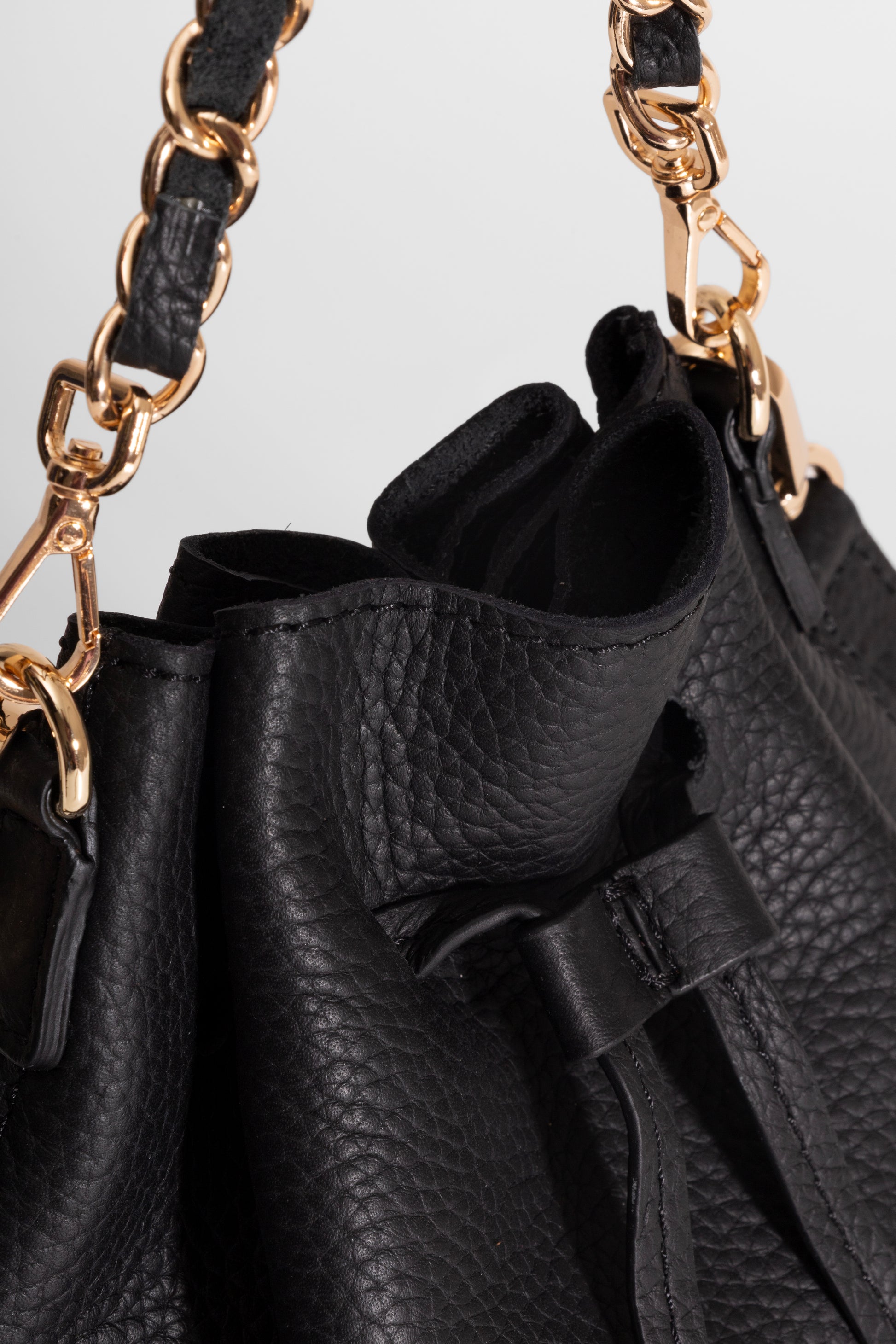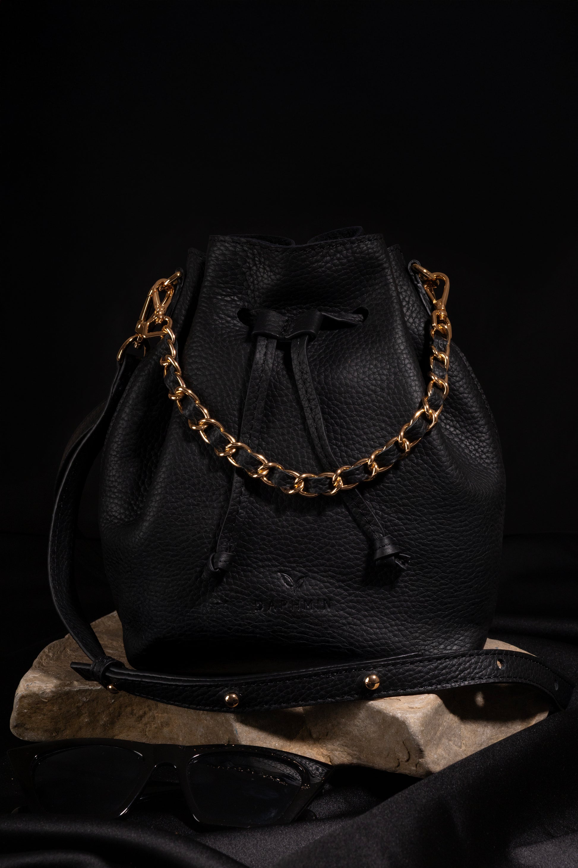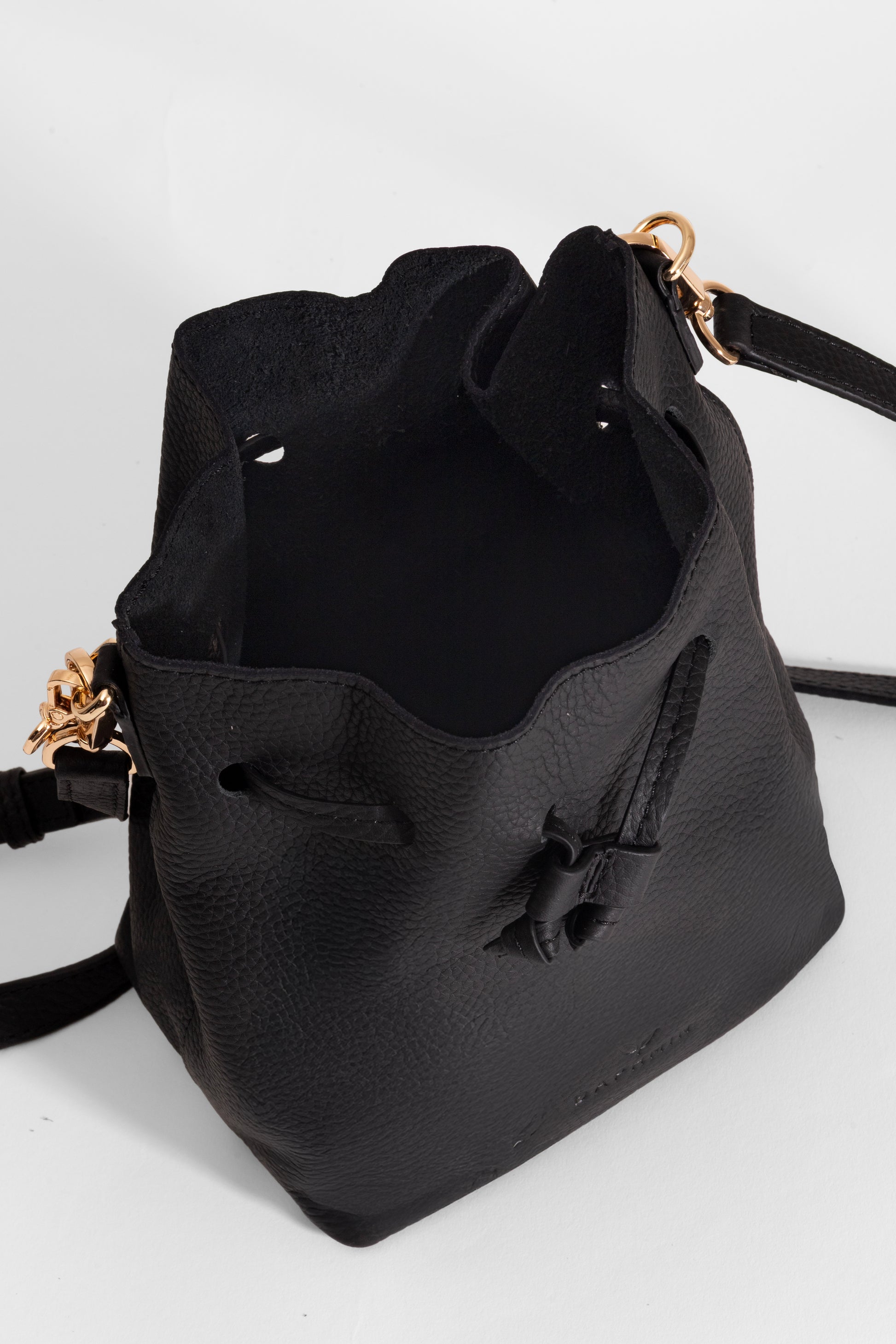 Sorellina Mini Bucket - Hakiki Deri Siyah Büzgülü Çanta