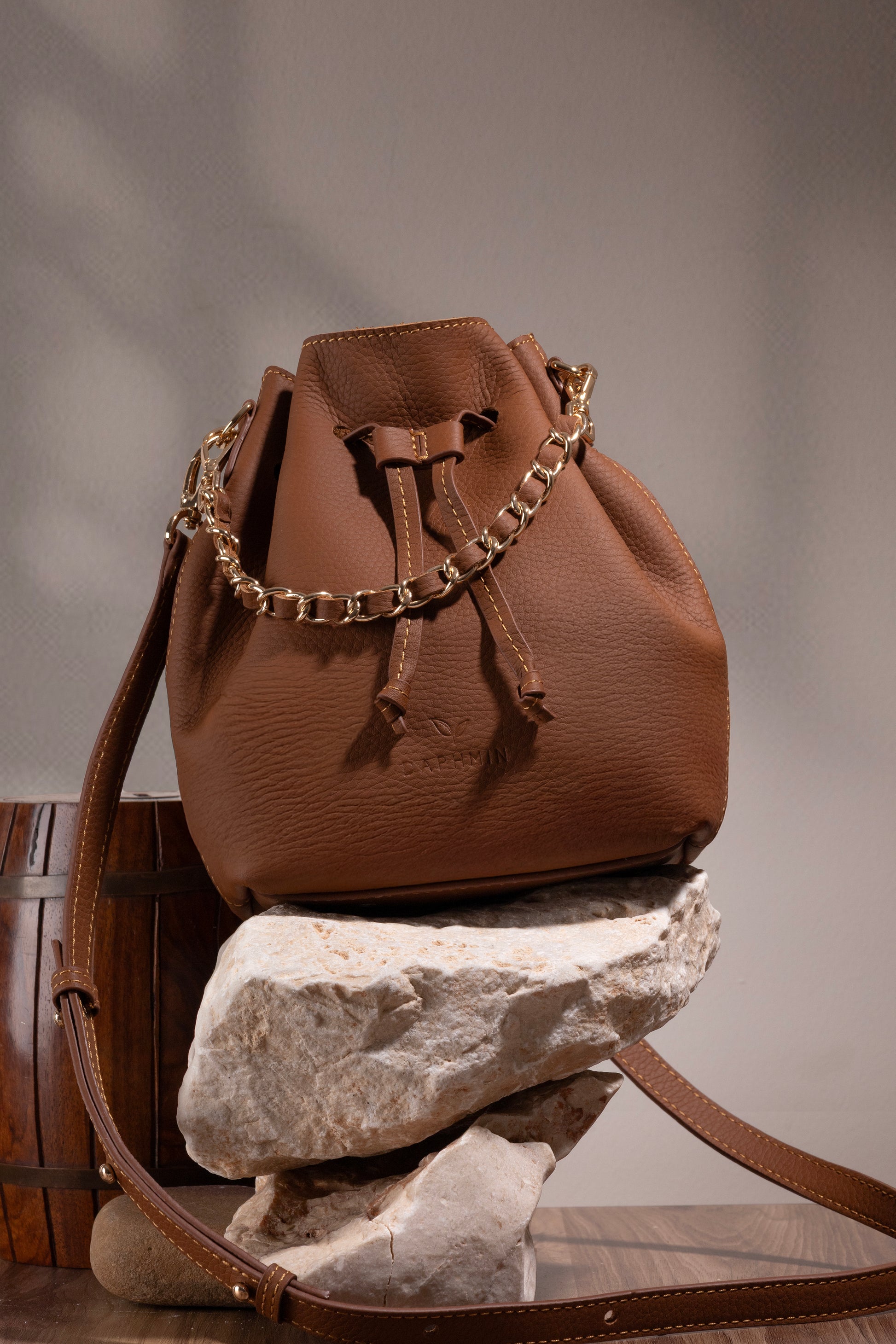 Sorellina Mini Bucket - Hakiki Deri Taba Büzgülü Çanta